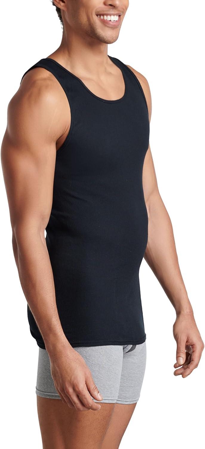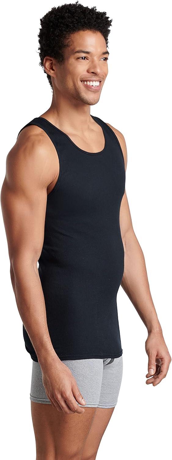 Fruit of the Loom Men’s Sleeveless Tag Free Moisture Wicking Tank A-Shirt(8 Pack – Black/Grey)