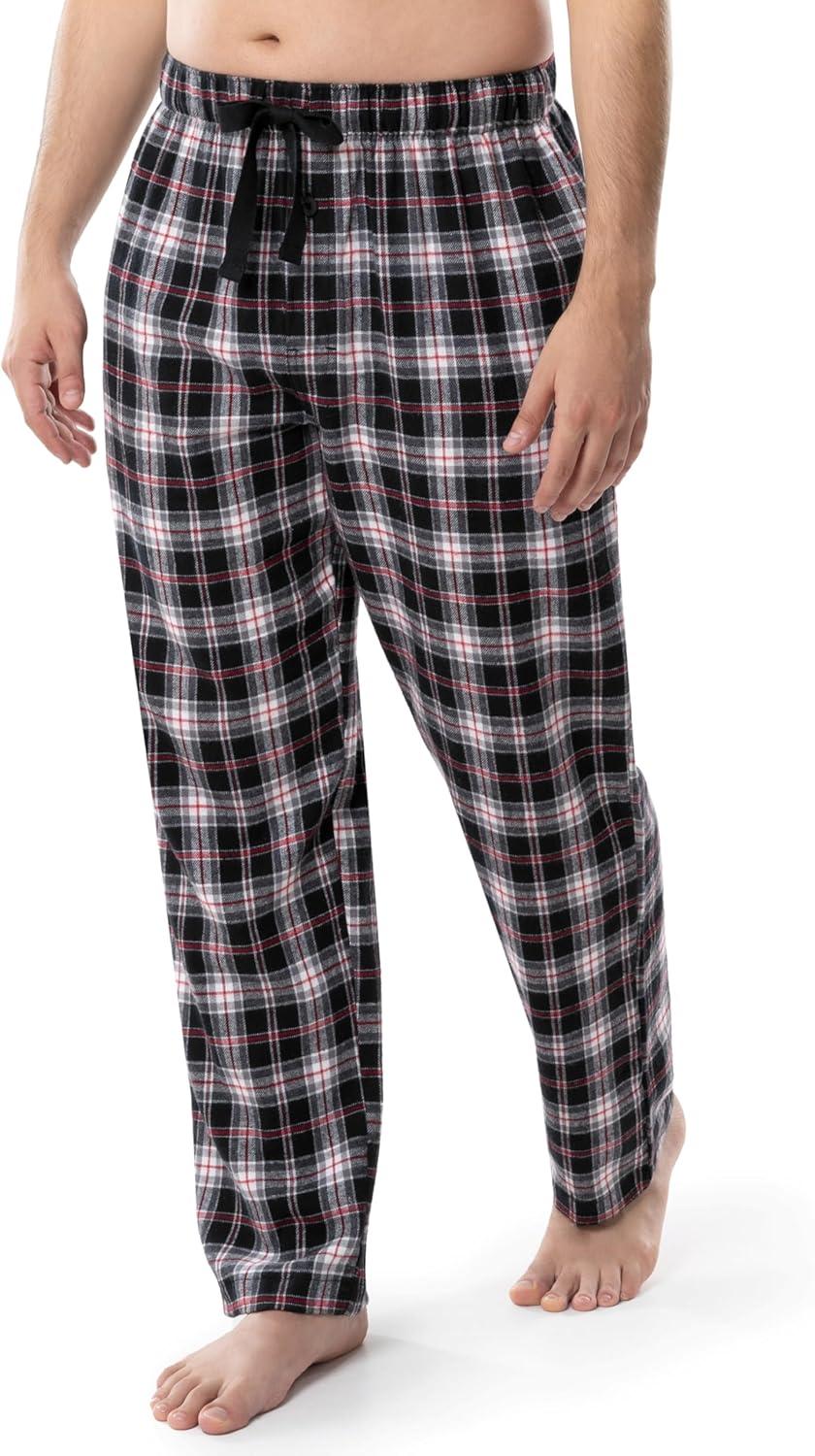 Fruit of the Loom Men’s Soft Flannel Pajama Lounge Sleep Pant(Black Plaid)