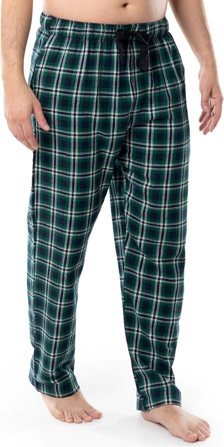Fruit of the Loom Men’s Soft Flannel Pajama Lounge Sleep Pant(Green Plaid)