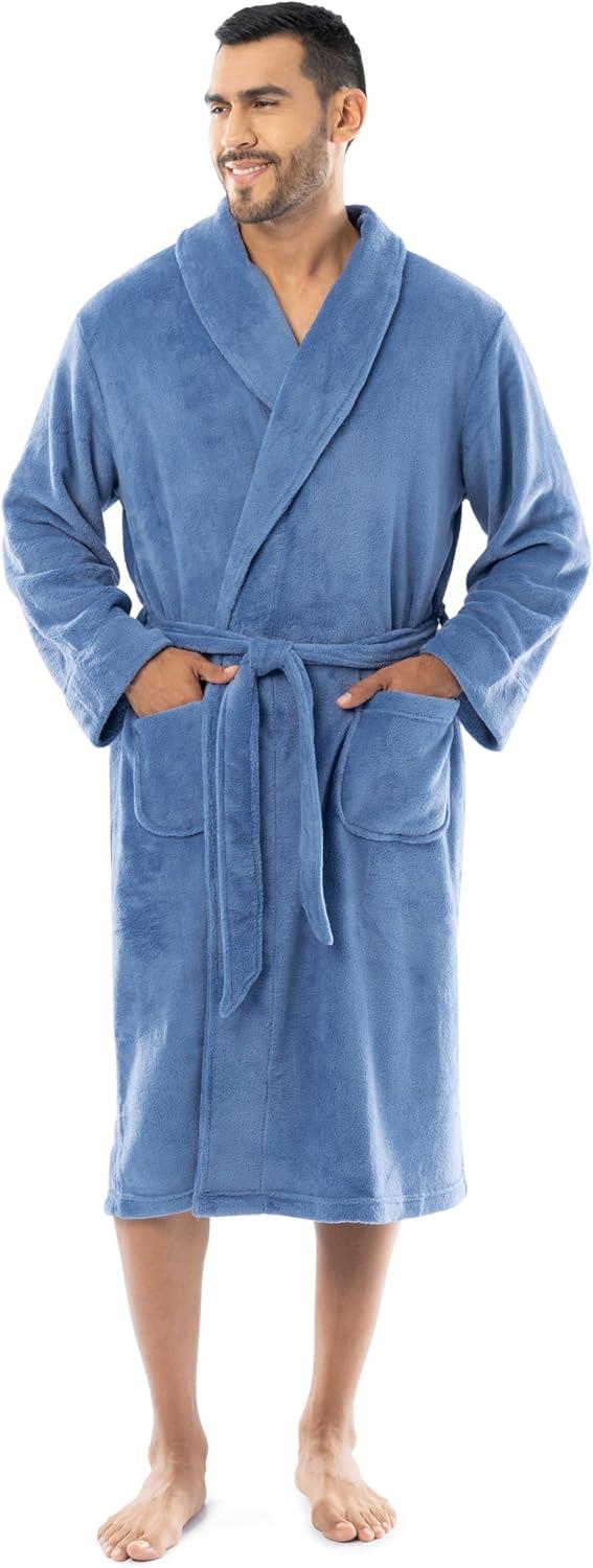 Fruit of the Loom mens Solid Plush Fleece Robe(Medium Blue)