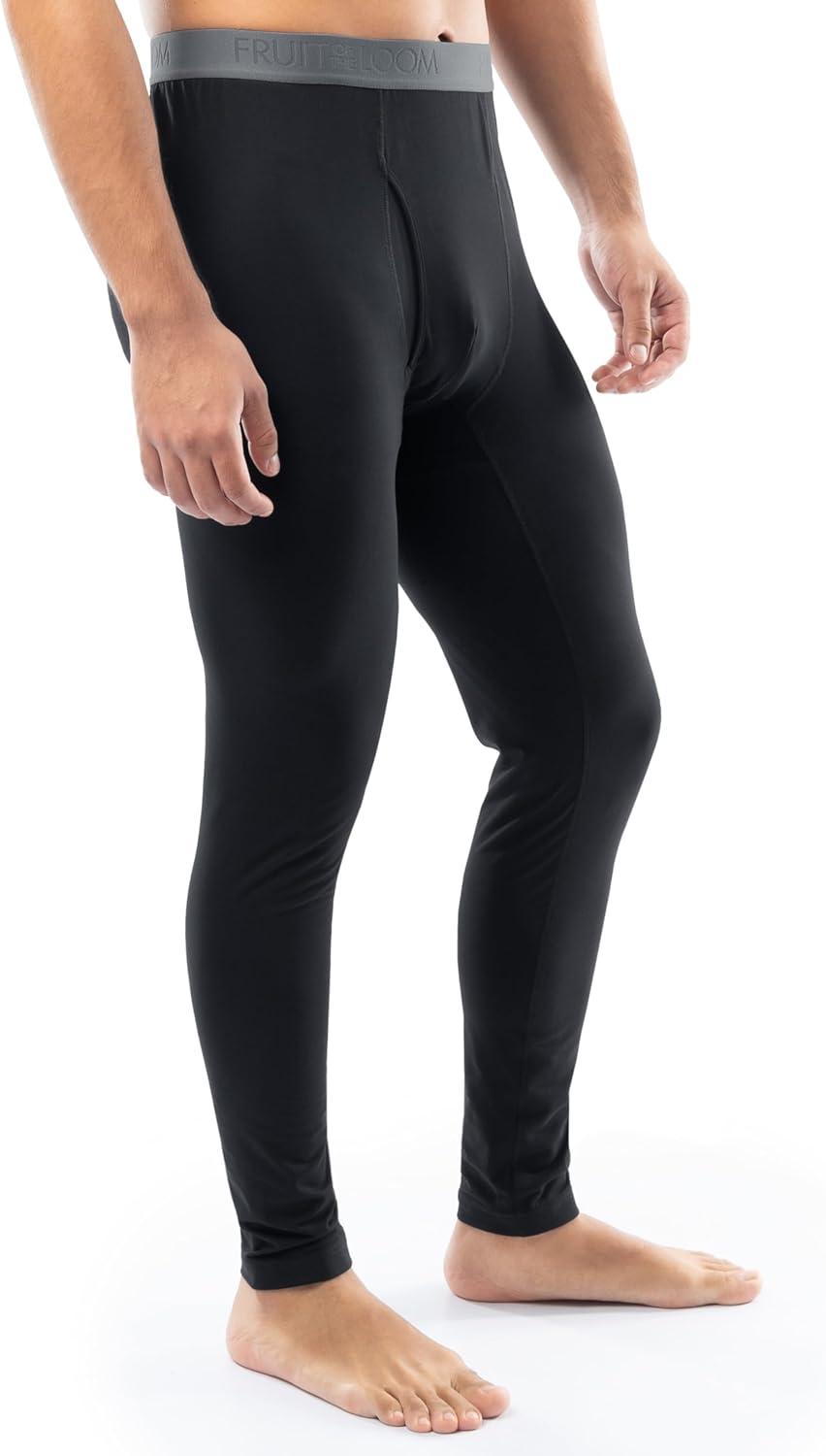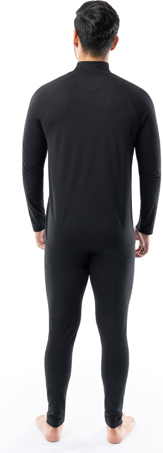 Fruit of the Loom Men’s Sueded Jersey Mock Neck Thermal Underwear Base Layer Set(Black)