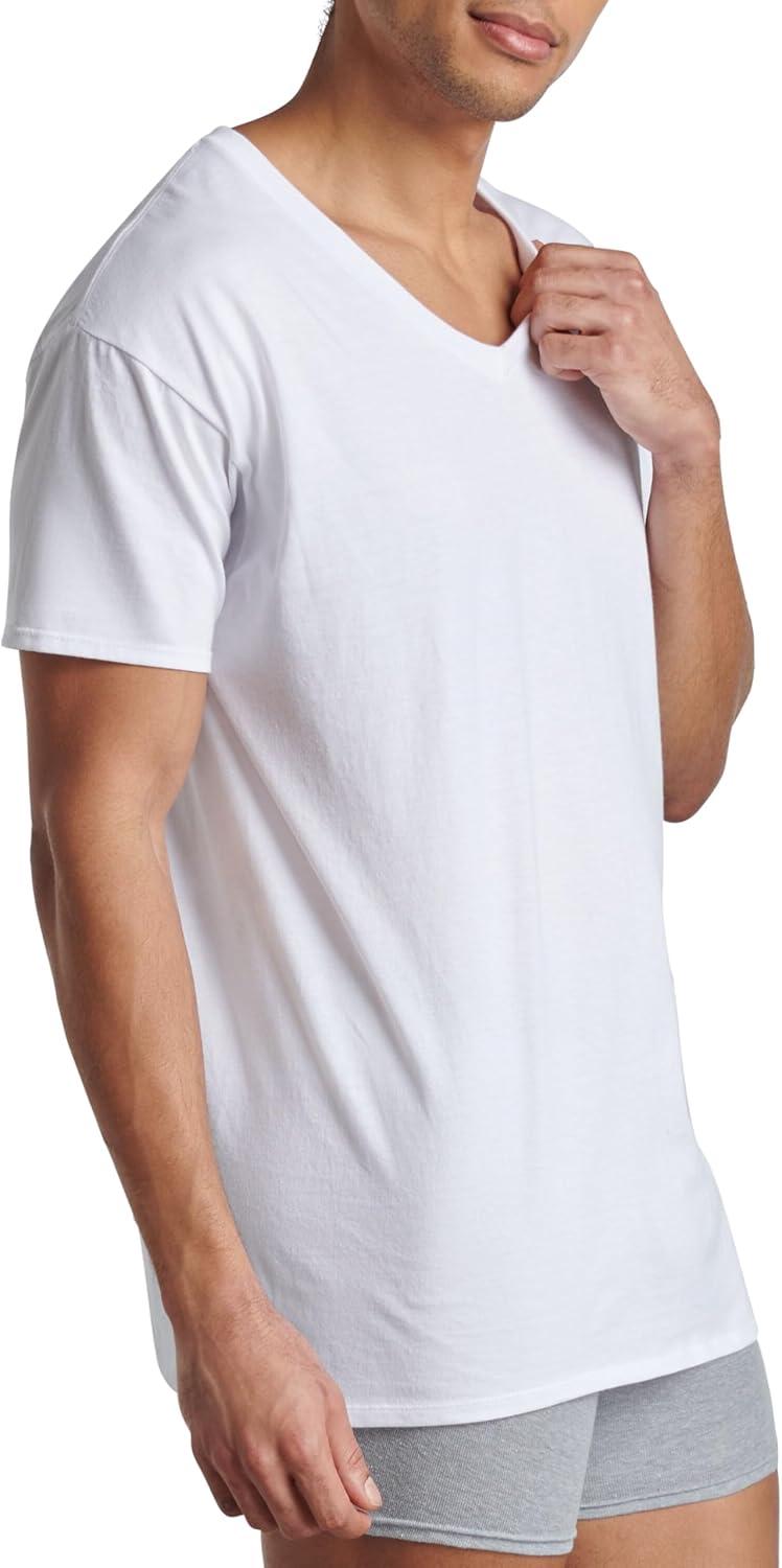 Fruit of the Loom Mens Tag-Free Cotton Undershirts(Regular – V-neck – 4 Pack White)