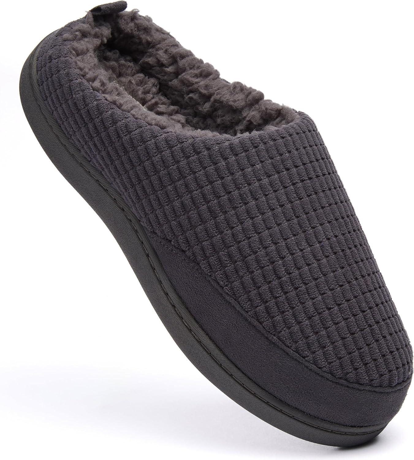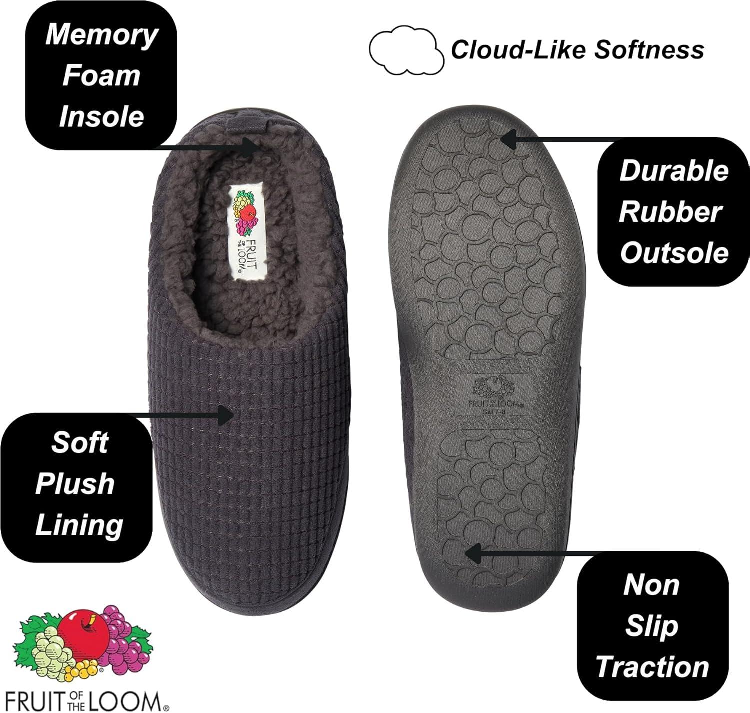 Fruit of the Loom Men’s Waffle Clog Slippers – Fleece, Memory Foam Sole – Indoor/Outdoor, Pantuflas Machine Washable(Charc)