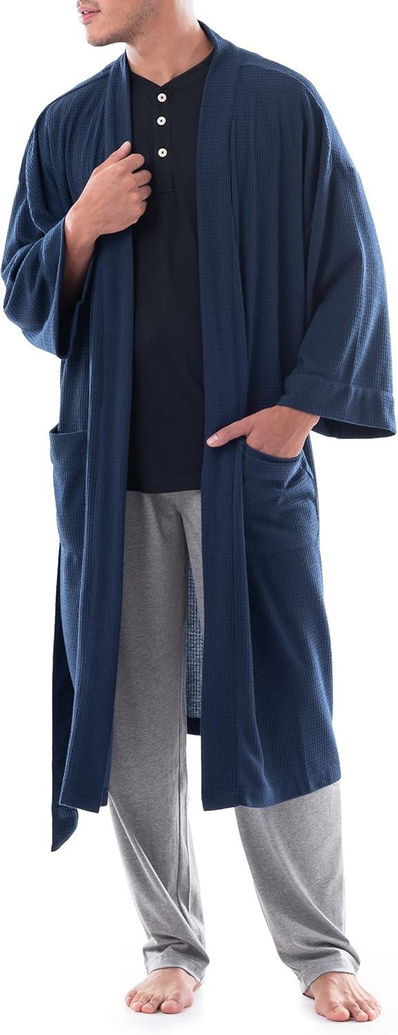 Fruit of the Loom Men’s Waffle Kimono Robe(Navy)