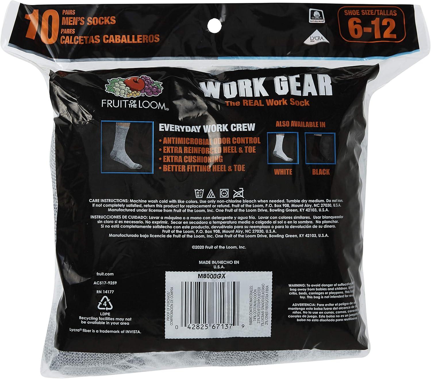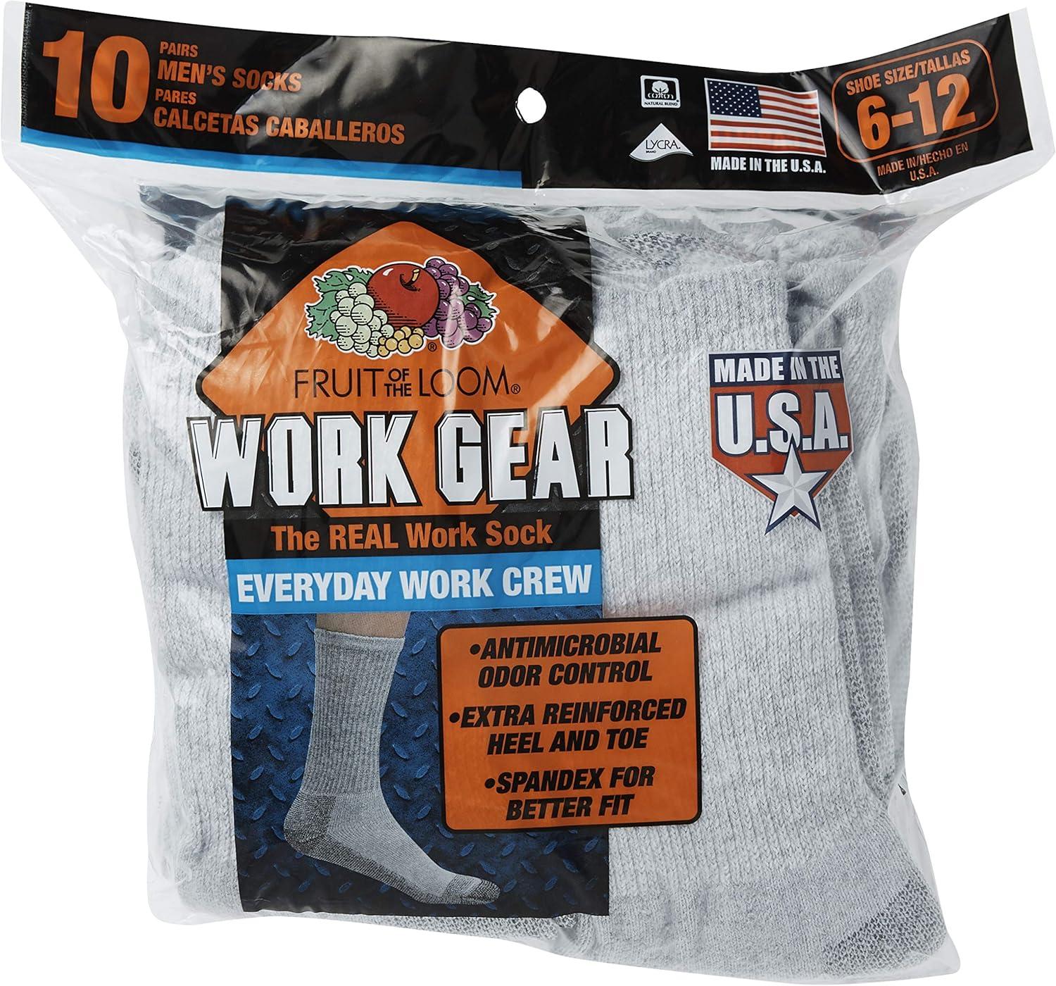 Fruit of the Loom Men’s Work Gear Cushioned Crew Socks 10 Pair(Grey)