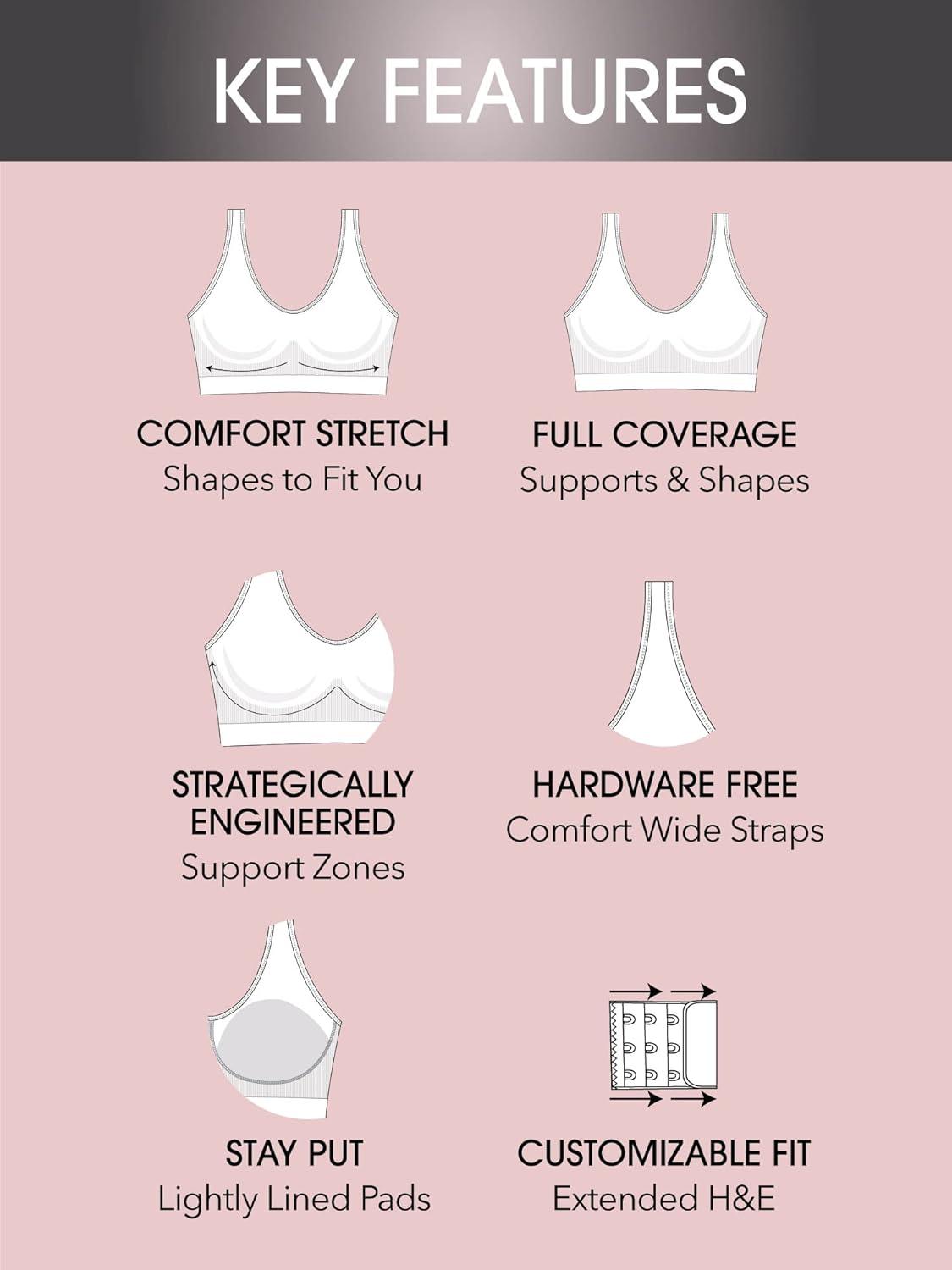 Looking for bras for women no underwire? These are the best bras for women who want all day comfort and support. The Fruit of the Loom Women's Everyday Smooth Wireless Bras are comfortable enough to sleep in and supportive enough as an everyday bra. Comfort stretch fabric shapes to fit your shape. The perfect underoutfit bra, seamless full coverage bra has smooth cups that lay flat under your clothes. Built-in, stay-put, lightly lined pads provide a natural shape. Bras for women shouldn't be itchy, so we've designed these tag, seam-free and wirefree! No underwire bras for women are designed with strategically engineered support zones that shape and lift. Wide comfort straps evenly distribute weight so that they won't dig-in. Back hook and eye closure makes it easy to adjust for your perfect fit. For more Fruit of the Loom bras, check out our brand store! An active lifestyle requires a brand that can give support and comfort. Fruit of the Loom has been one of America’ s most trusted brands for over 160 years. We promise to deliver quality undergarments at an affordable price…always. Start everyday happy with Fruit of the Loom.