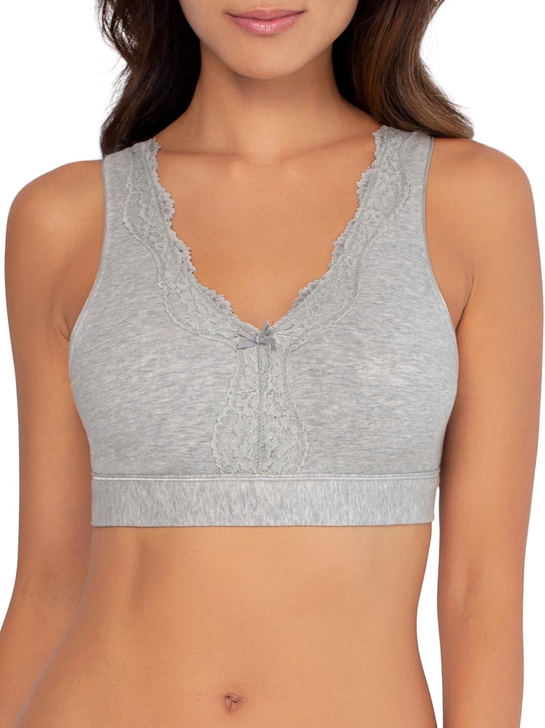 Fruit of the Loom Women’s 2-Pack Full Coverage Wireless Cotton Bra – Soft & Everyday Comfort(Grey Heather/Black Hue)