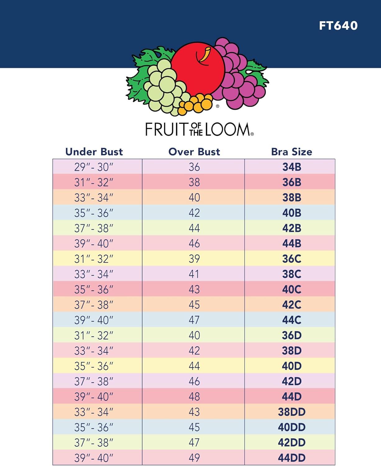 | Size | 34B, 34C, 34D, 36B, 36C, 36D, 36DD, 38B, 38C, 38D, 38DD, 40B, 40C, 40D, 42B, 42C, 44B |