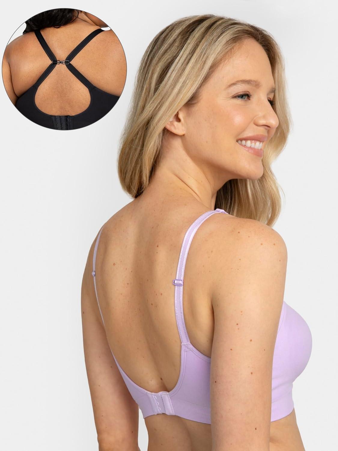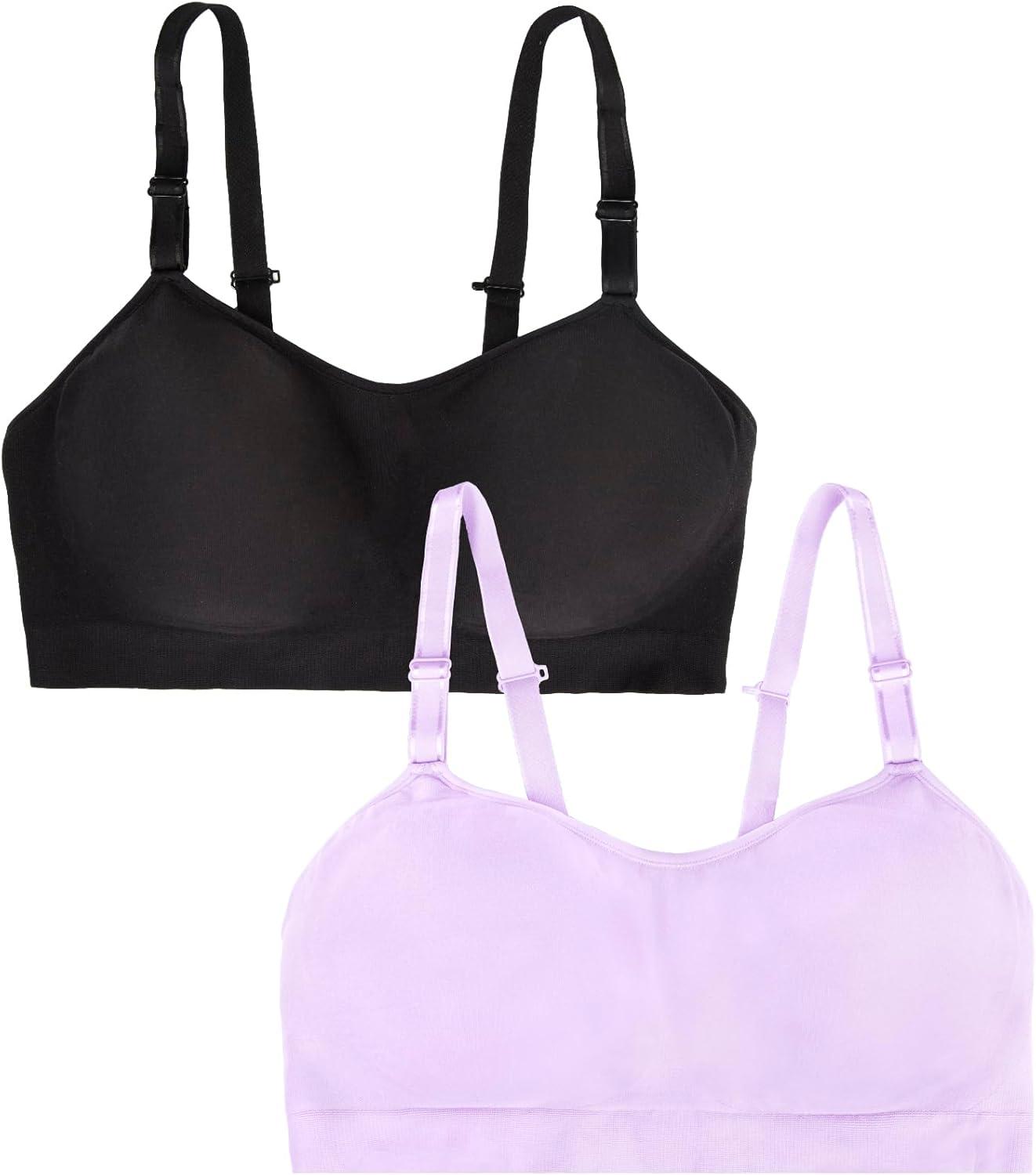 Fruit of the Loom Women’s 2-Pack Stretch Wireless Bra w/Built in Pads(Black Hue/Lilac Whisper)