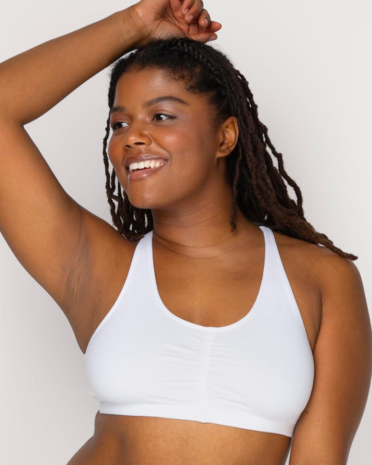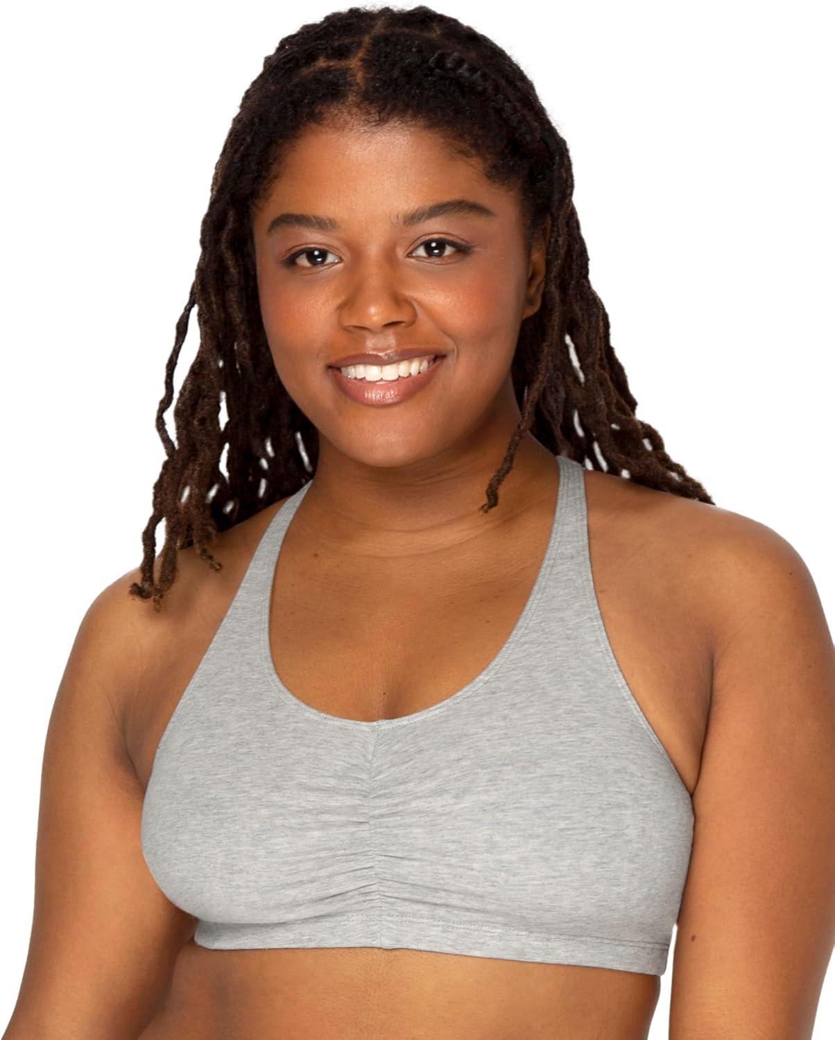 Fruit of the Loom Women’s Adjustable Shirred Front Racerback Sports Bra, Multi Pack Options(Heather Grey/ White/ Black – Adjustable)