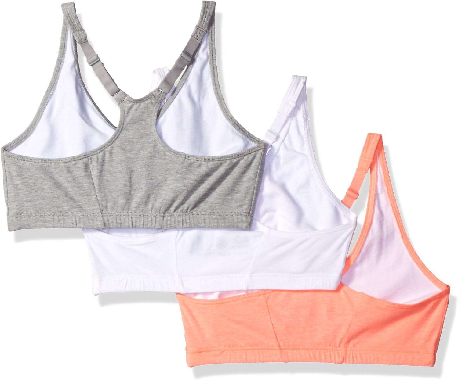 Fruit of the Loom Women’s Adjustable Shirred Front Racerback Sports Bra, Multi Pack Options(Punchy Peach/White/Grey Heather)