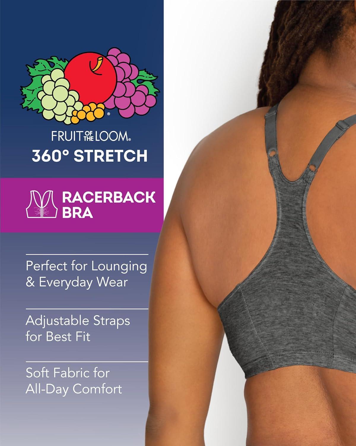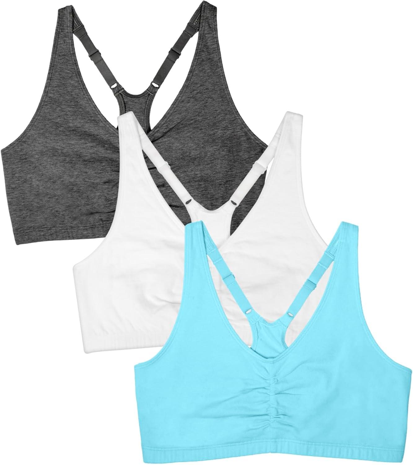 Fruit of the Loom Women’s Adjustable Shirred Front Racerback Sports Bra, Multi Pack Options(Turquoise/White/Charcoal)