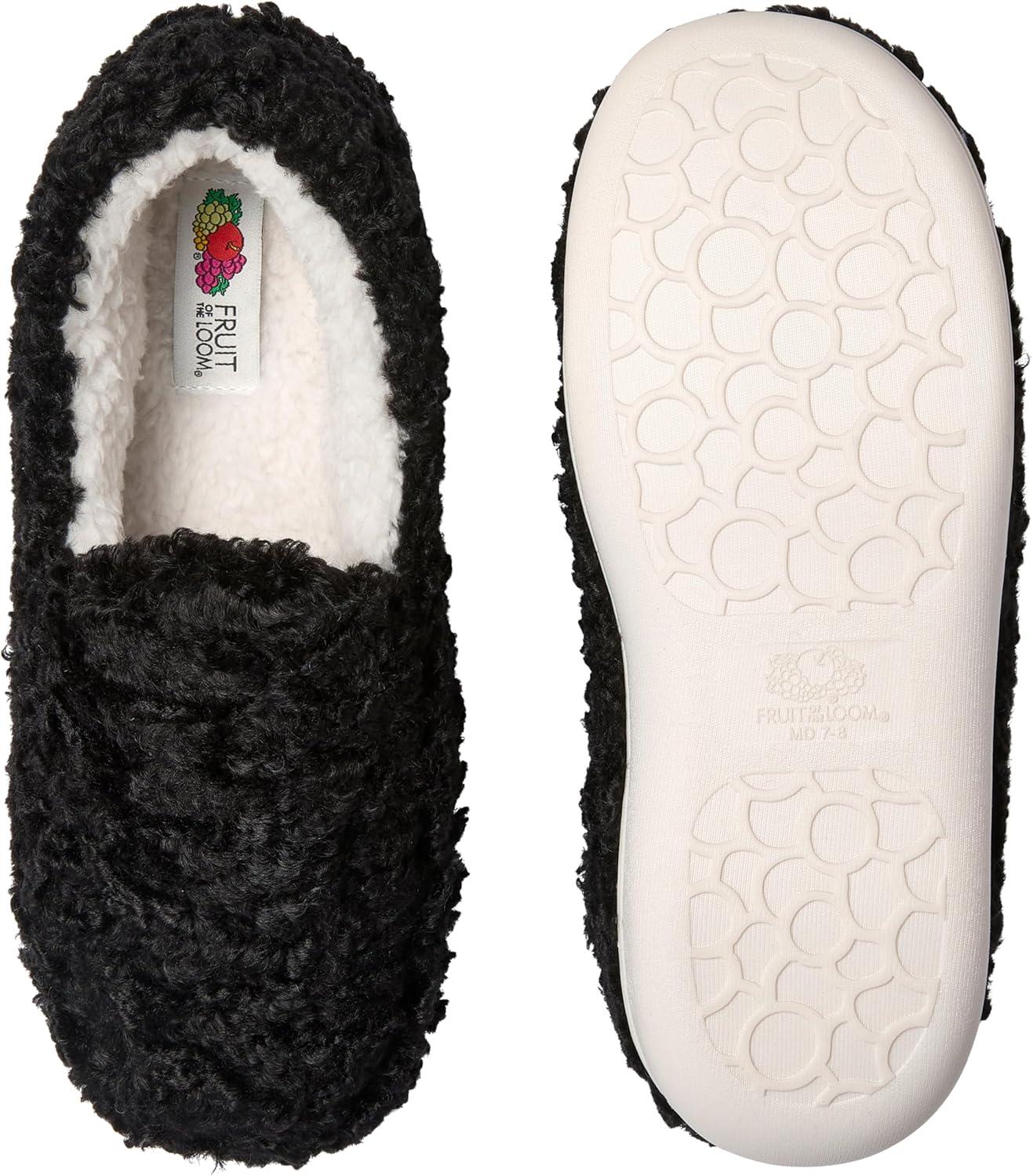 Fruit of the Loom Women’s Berber Loafer – Comfy, Memory Foam, Indoor/Outdoor(Black)