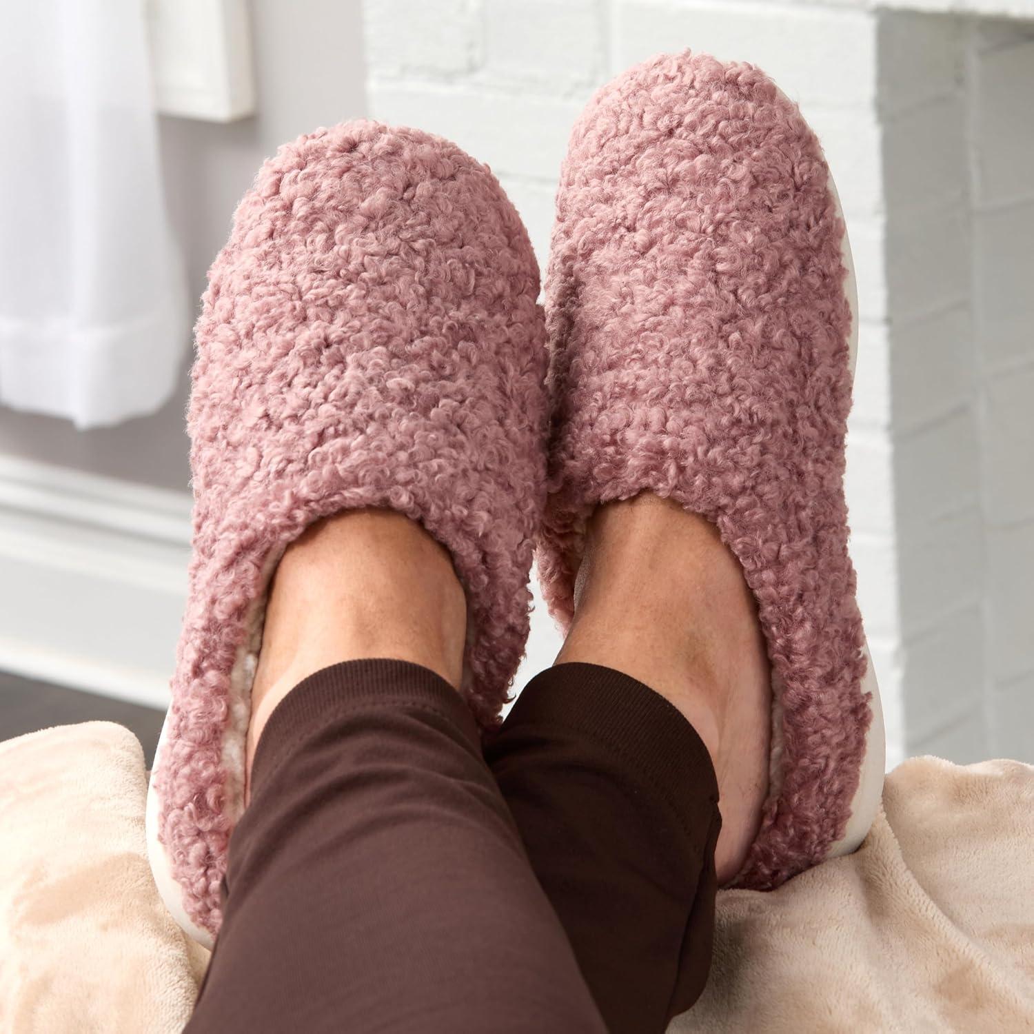 Fruit of the Loom Women’s Berber Slippers – Fuzzy Memory Foam, Lightweight Clog, Indoor/Outdoor, Zapatillas de Mujer(Pink)