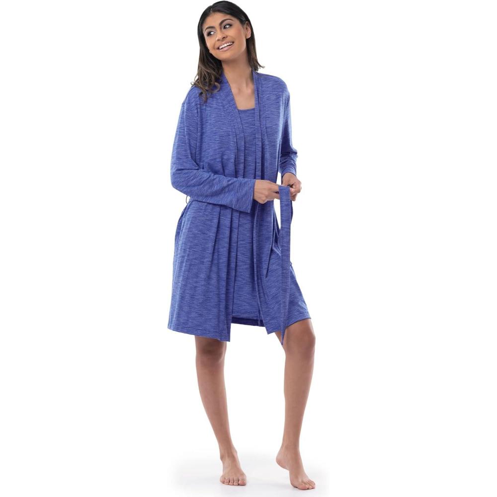 Fruit of the Loom womens Breathable Robe(Heather Navy)