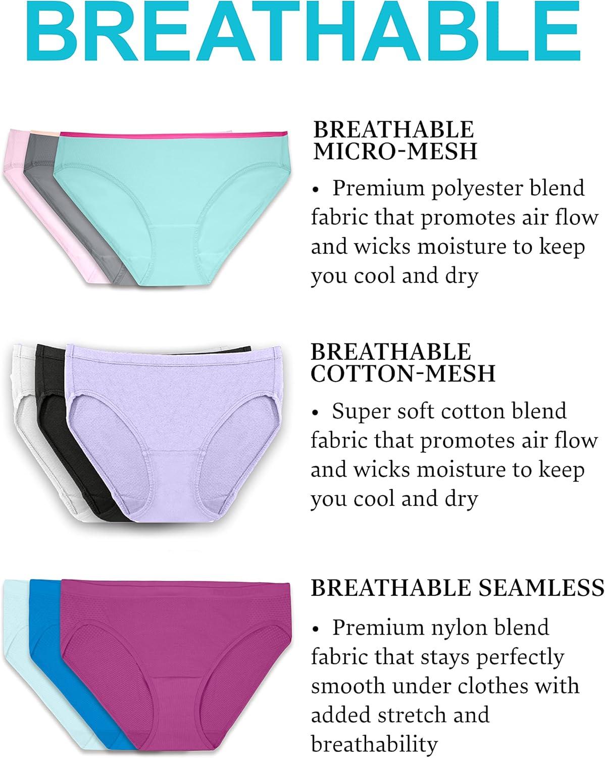 Fruit of the Loom Women’s Breathable Seamless Underwear(Low Rise Brief – Seamless Mesh – 3 Pack)