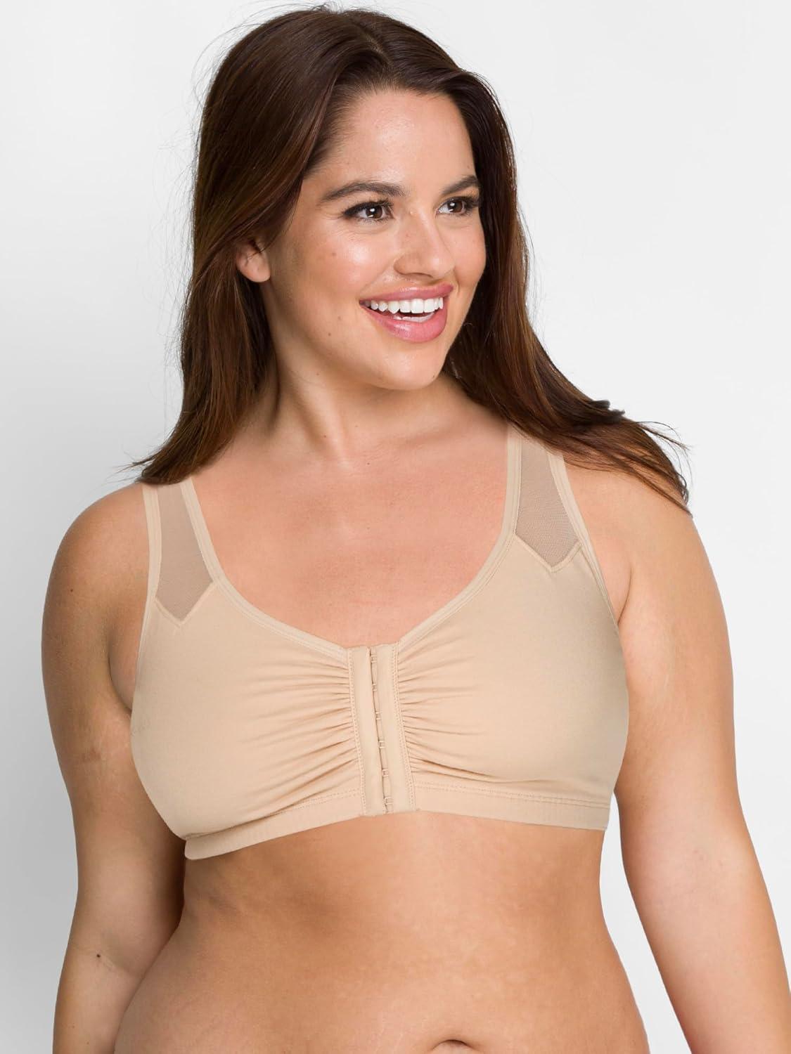 Fruit of the Loom Women’s Comfort Front Close Sport Bra with Mesh Straps(Sand)