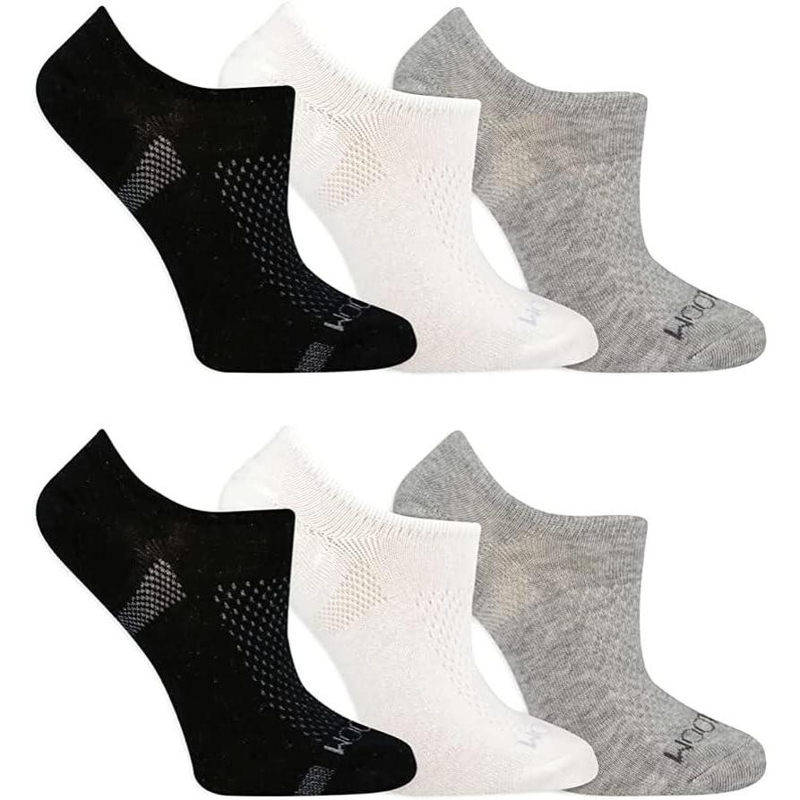 Designed for your active life, Fruit of the Loom Women’s CoolZone Cotton Socks blend classic cotton comfort and cooling technology for a difference you can feel with every step. Carefully made with softer, premium cotton yarn, these double tab women’s no show socks with extra cushioning in a convenient 6 pair pack have strategically placed breathable mesh ventilation to keep feet cool and comfortable throughout the day. Perfect for work or working out, every pair of our cotton socks for women wicks away moisture for dry, fresh comfort, while the classic white, black, and accent colors offer multiple matching options to easily wear with your favorite tennis shoes and sneakers. Enhanced non-slip arch support means the sock stays put for a snug, but not-too-tight performance fit you expect from athletic socks. Stay cool where it matters in thicker, padded cushioned cotton softness and make CoolZone no show socks for women your go-to everyday essential. Available in medium and roomier comfort shoe sizes, the cotton and polyester fabrication makes this softer women’s moisture wicking sock the easy choice at work or working out.