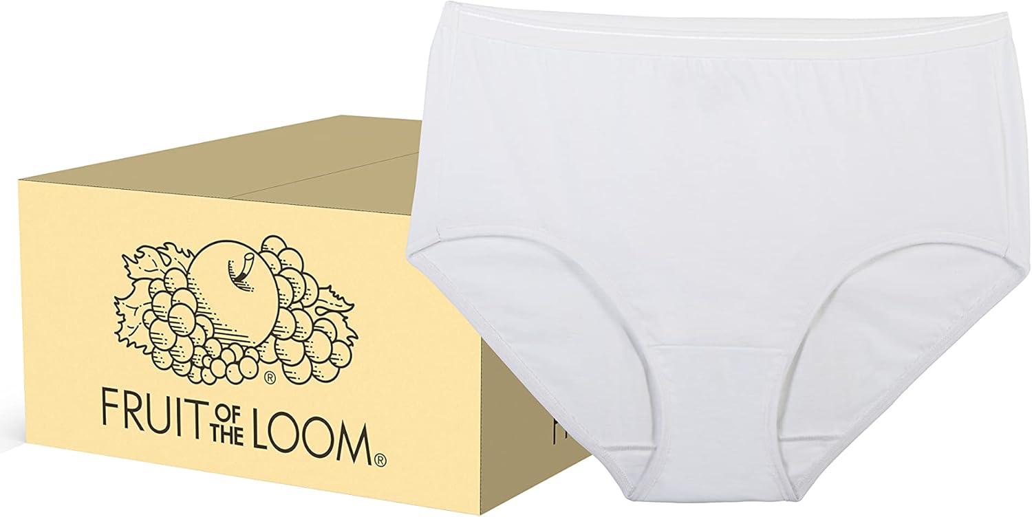 Fruit of the Loom Women’s Eversoft Cotton Brief Underwear, Tag Free & Breathable, Available in Plus Size(144 Pack – White)