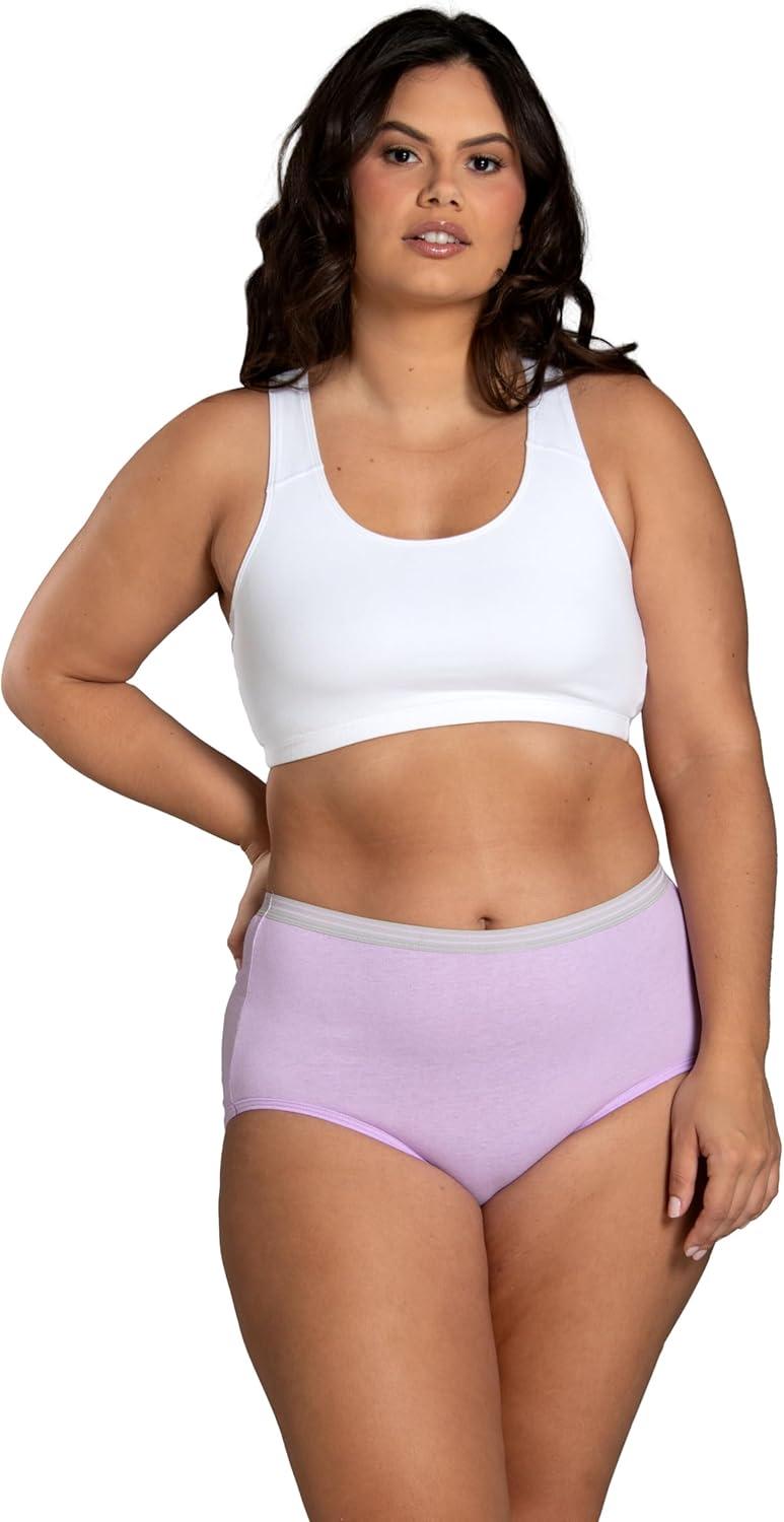 Fruit of the Loom Women’s Eversoft Cotton Underwear Multipacks, Tag Free & Breathable, Available in Plus Size(Brief – Grey/Pink/Blue)