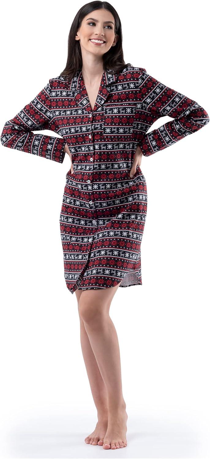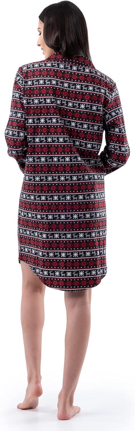 Fruit of the Loom womens Flannel Sleep Shirt(Fair Isle Black)