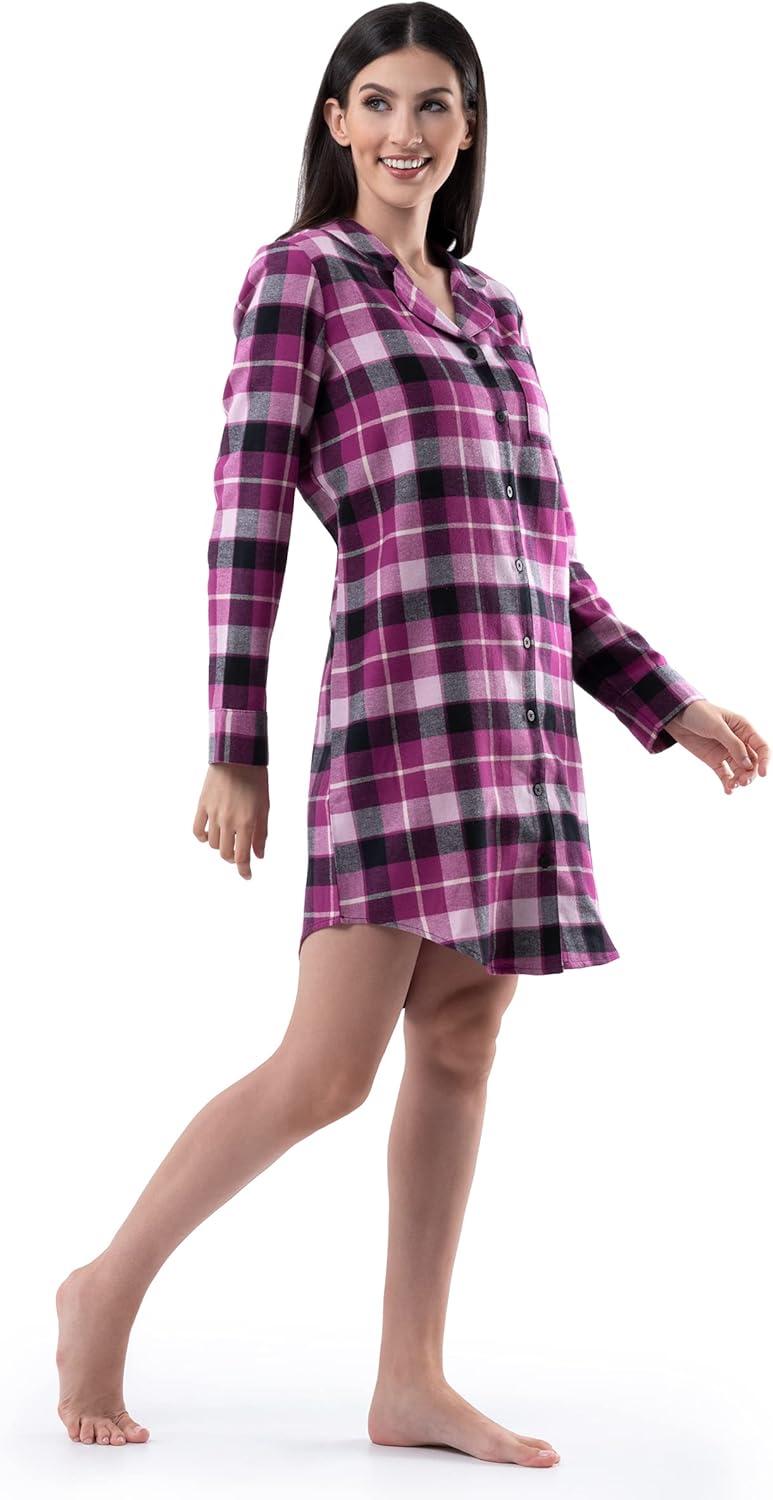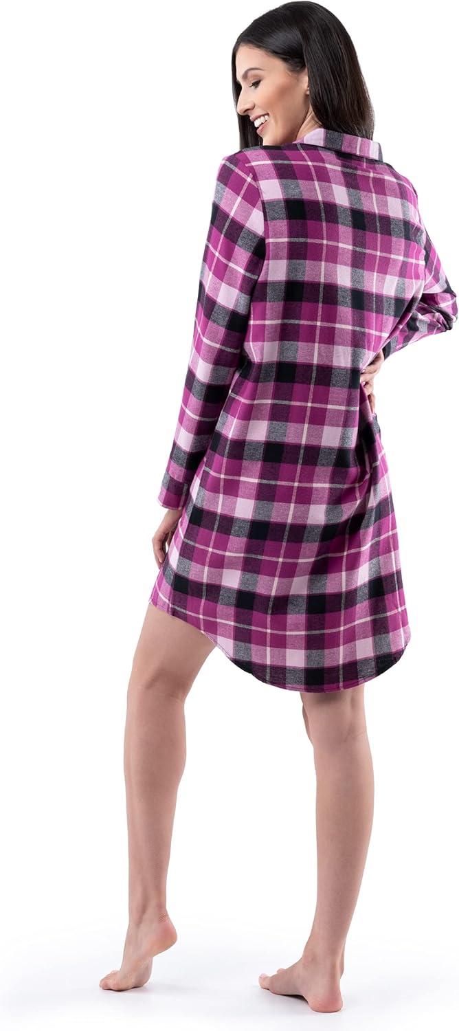 For easy all-night comfort with the right amount of warmth, this Ladies’ Flannel Sleep Shirt from Fruit of the Loom offers unmatched styling, practicality, and overall cozy comfort. The extra-soft flannel fabric provides the warmth you need on chilly nights or while leisurely lounging at home with the family. Button-down front paired with classic V neckline and collar gives it a classic styling, paired with cuffed long sleeves for extra warmth and handy left-chest pocket. Its rounded bottom hem fits above the knee and allows for a relaxed fit that would restrict your movements.