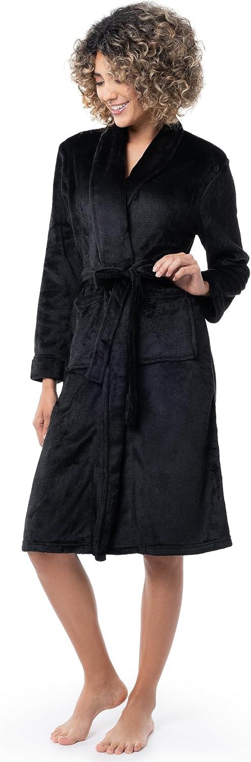 Fruit of the Loom Womens Fleece Robe(Black)