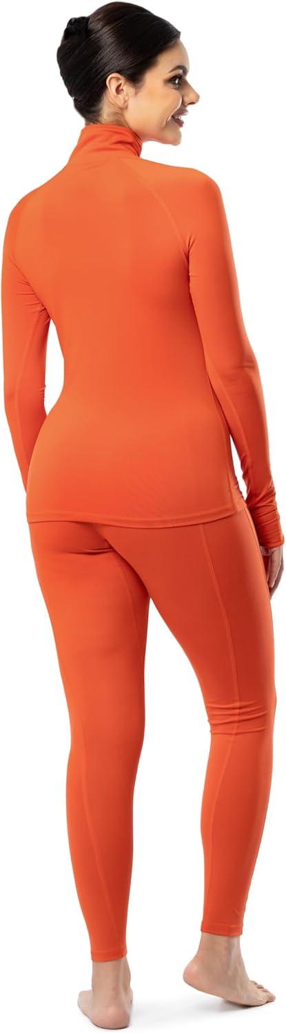 Fruit of the Loom womens High Neck Quarter Zip Top and Legging Thermal Set(Mandarin)