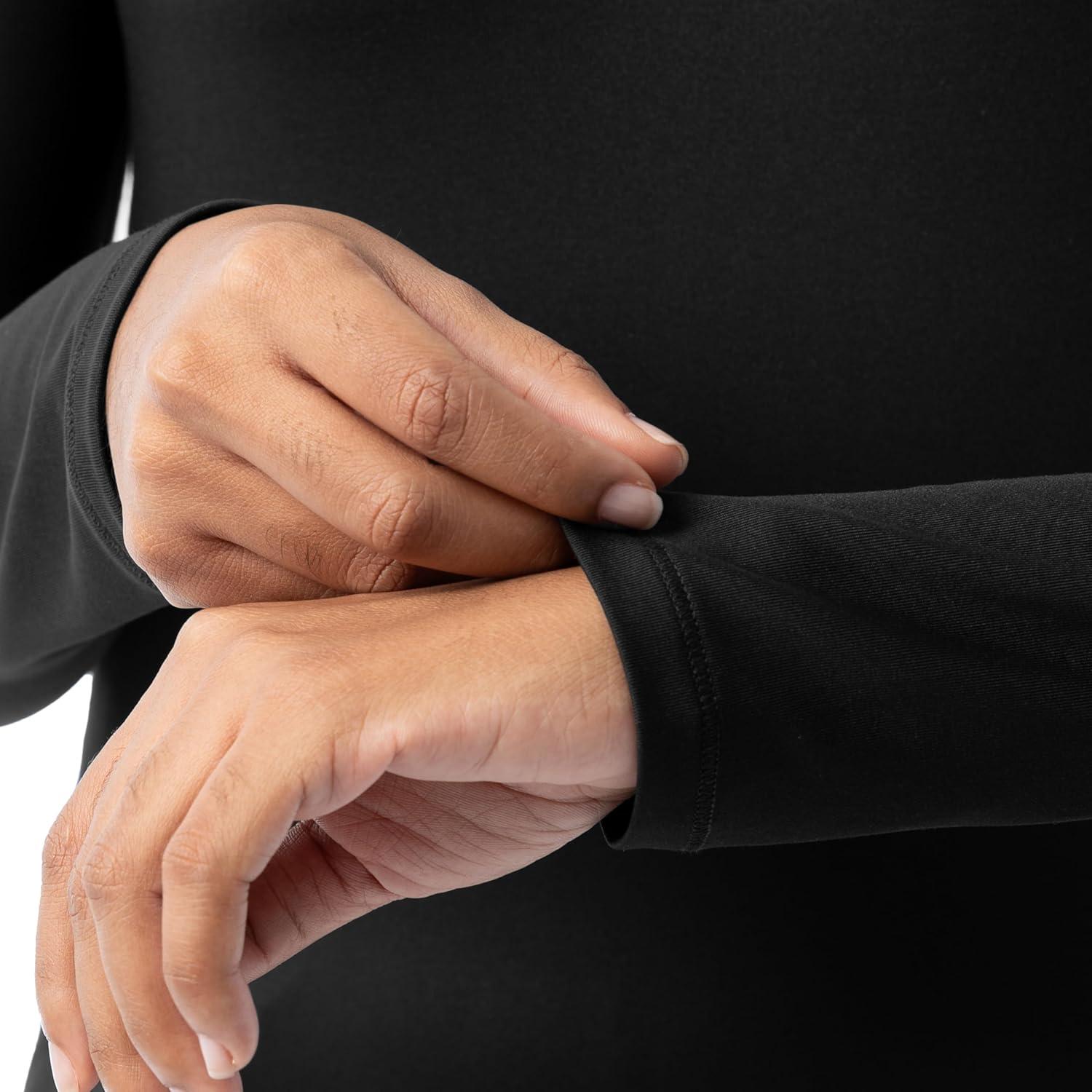 Fruit of the Loom womens High Neck Top and Legging Thermal Set(Black)