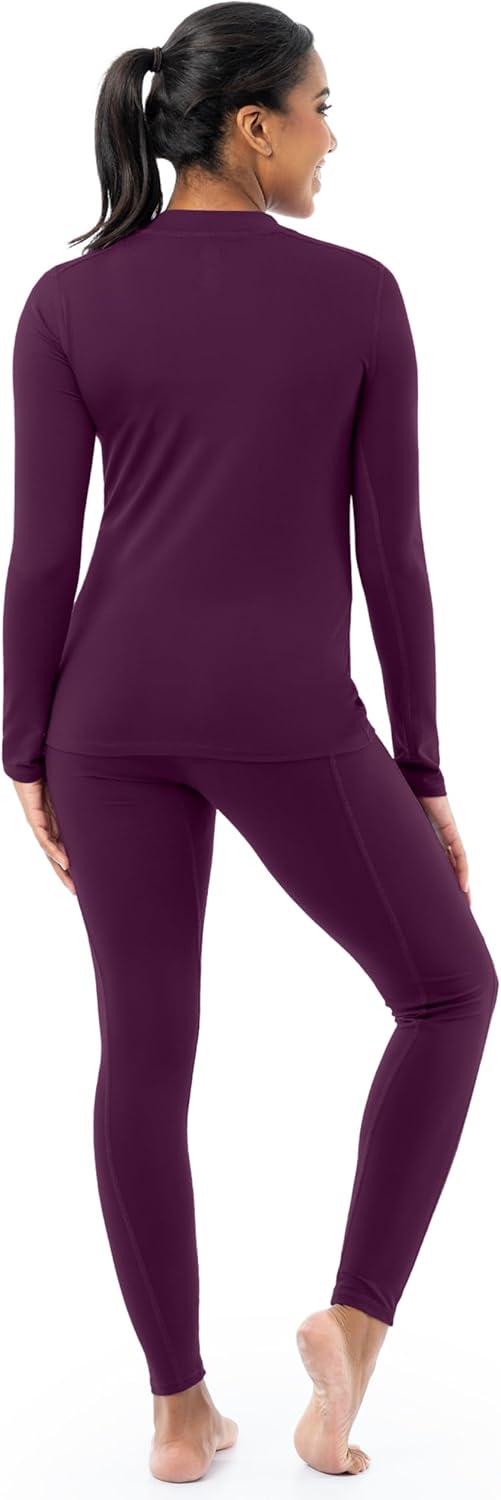 Fruit of the Loom womens High Neck Top and Legging Thermal Set(Purple)