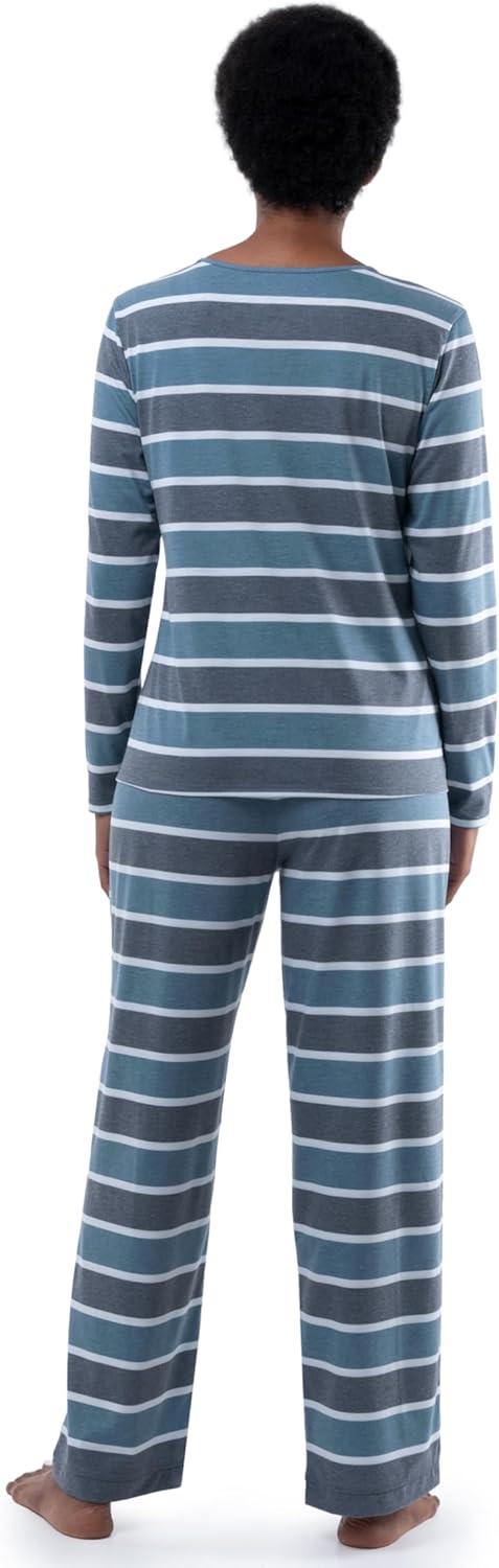 Fruit of the Loom womens Long Sleeve Tee and Pant 2 Piece Sleep Set(Blue Stripe)