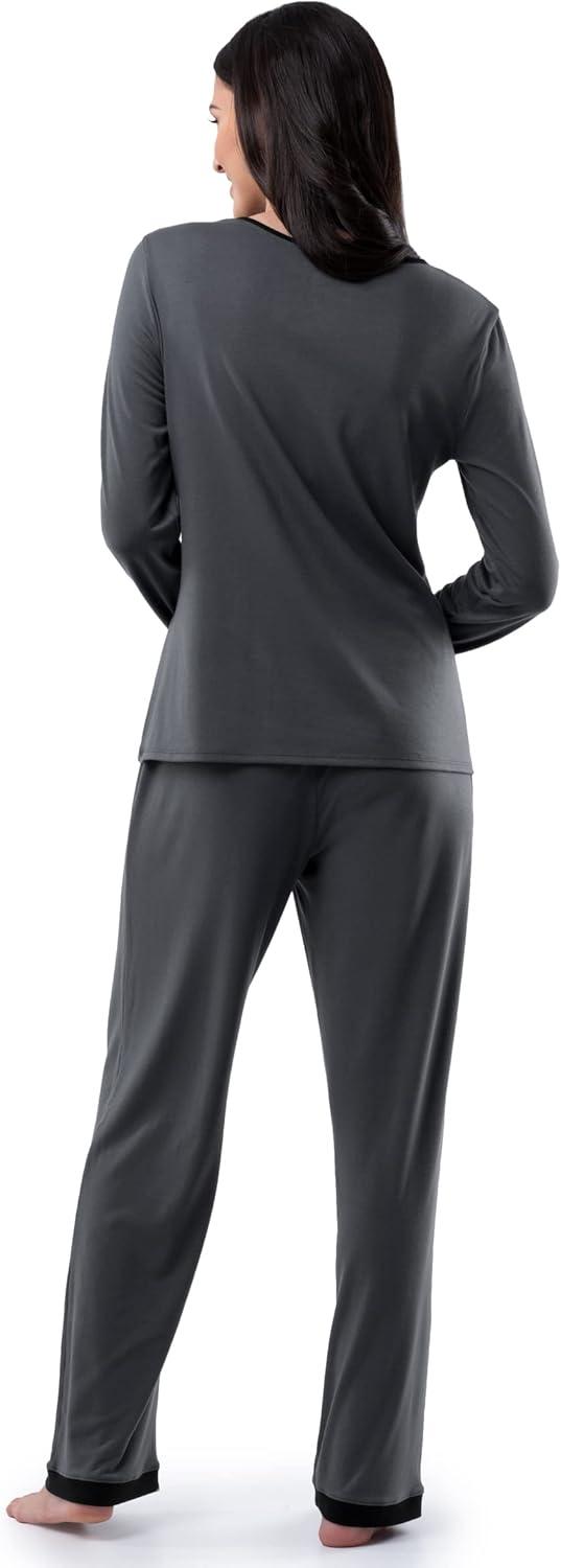 Fruit of the Loom womens Long Sleeve Tee and Pant 2 Piece Sleep Set(Grey)