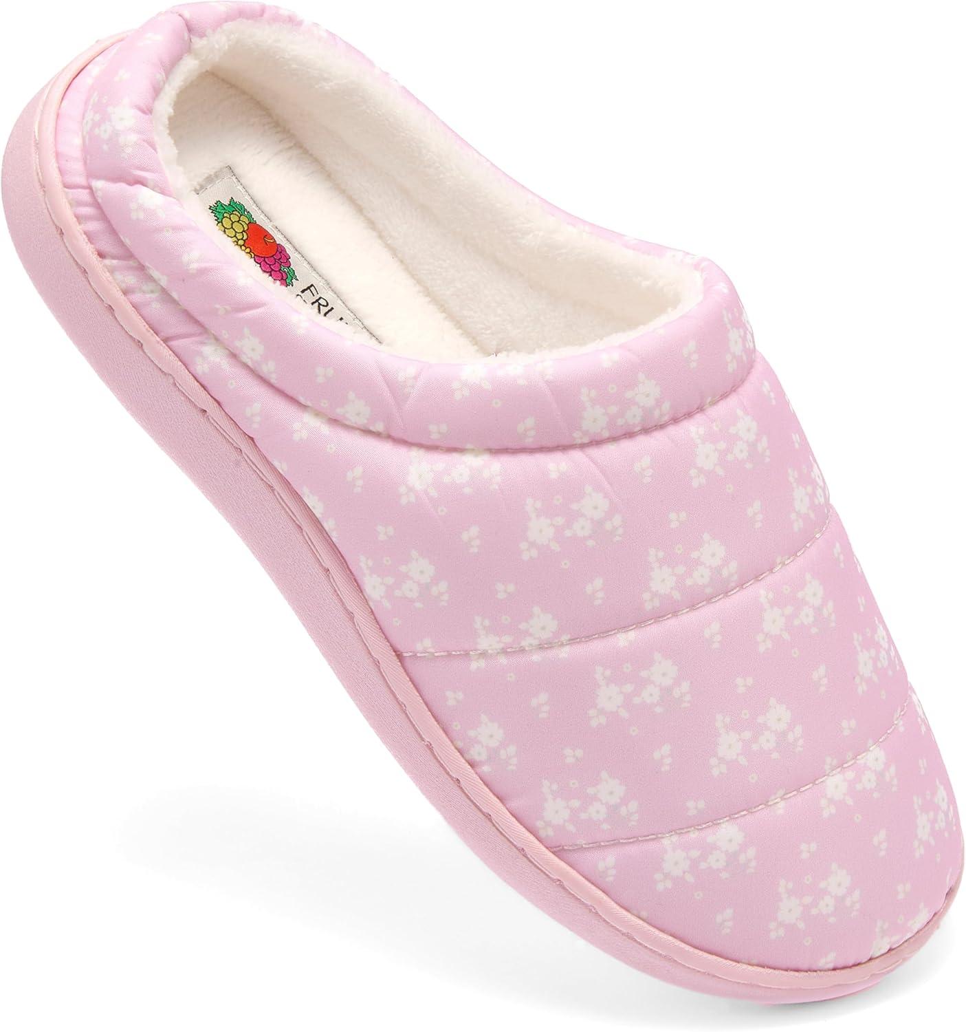 Fruit of the Loom Womens Memory Foam Slippers, Retro Ditsy Floral Cute Fluffy Slippers for Girls, Comfy Plush Lined, Gifts for Girls(Blush)