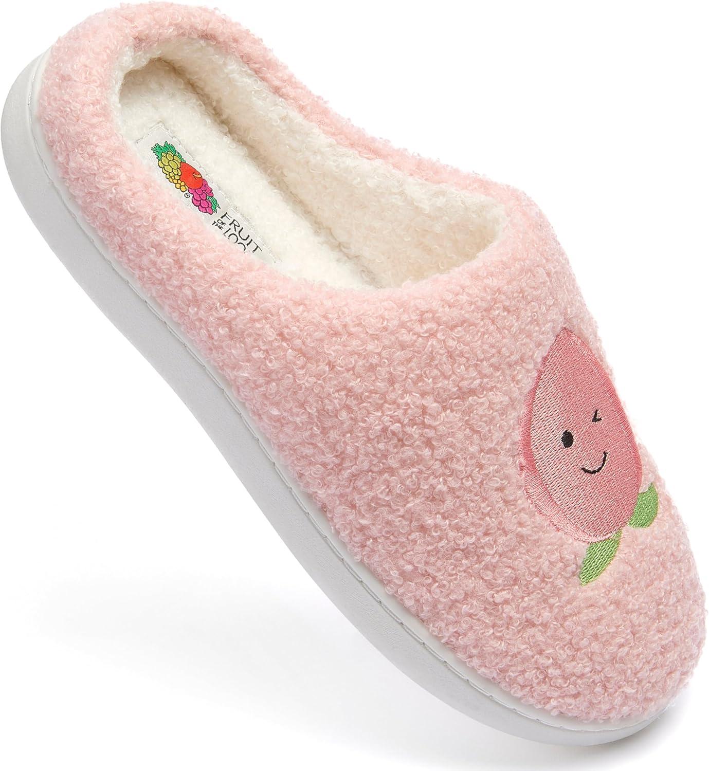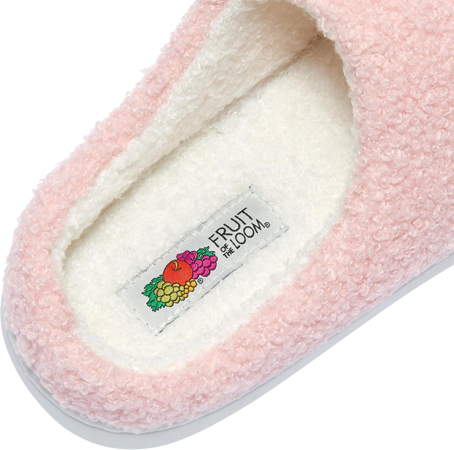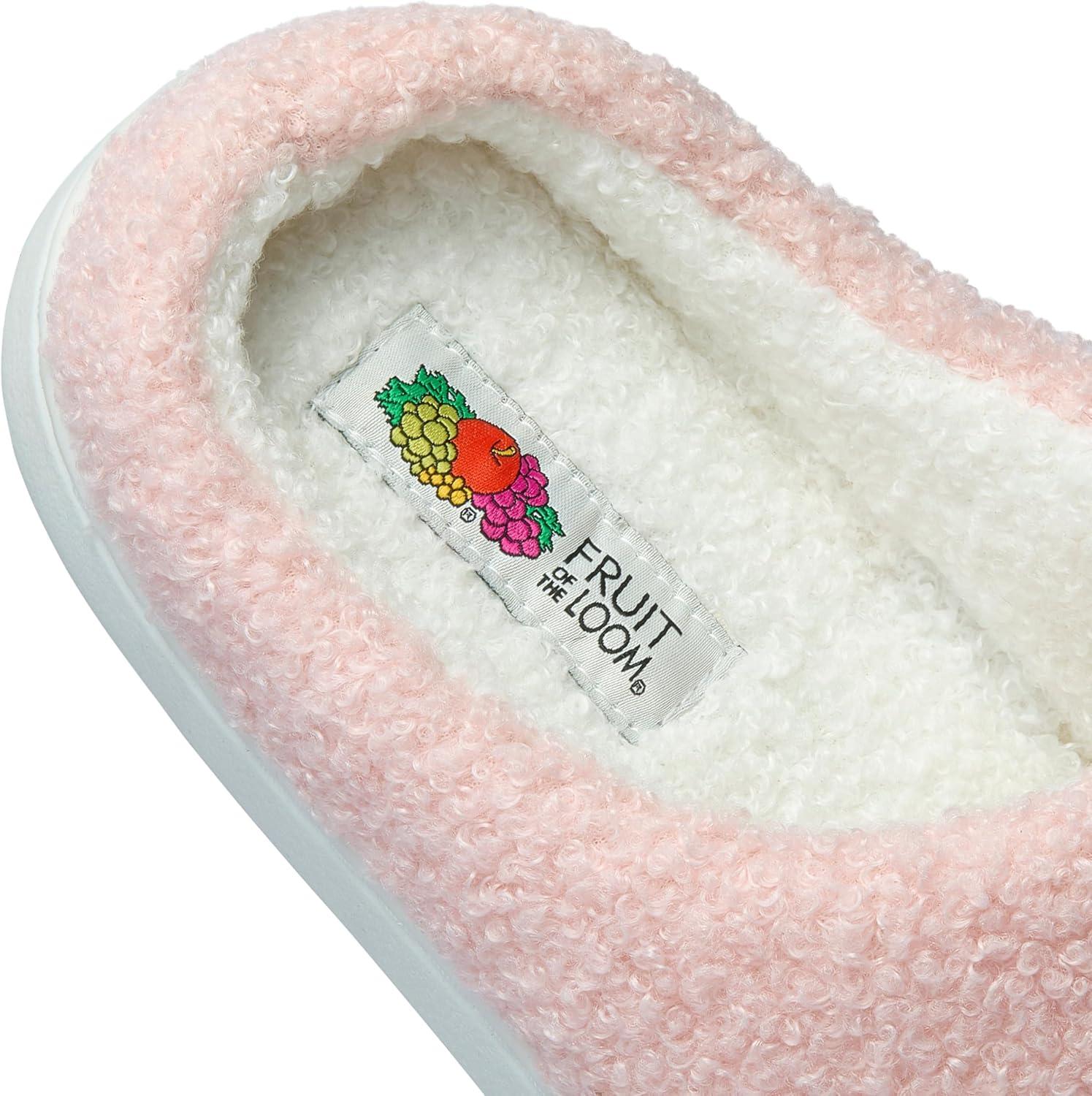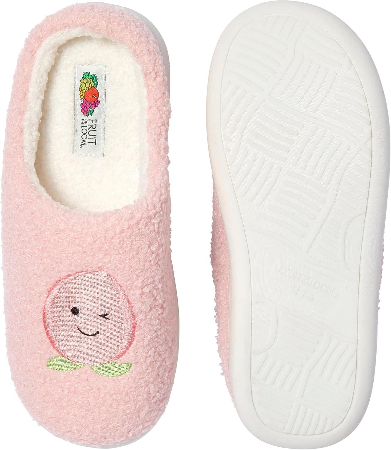 Fruit of the Loom Womens Memory Foam Slippers, Sherpa Lined Indoor/Outdoor House Shoes with Cute Grape Design, Cozy Fluffy Gift for Girls(Pink)