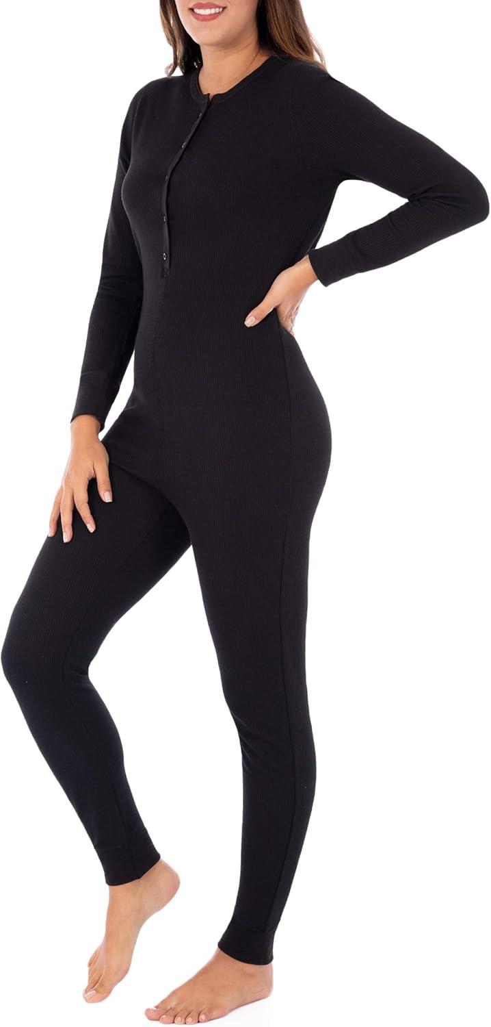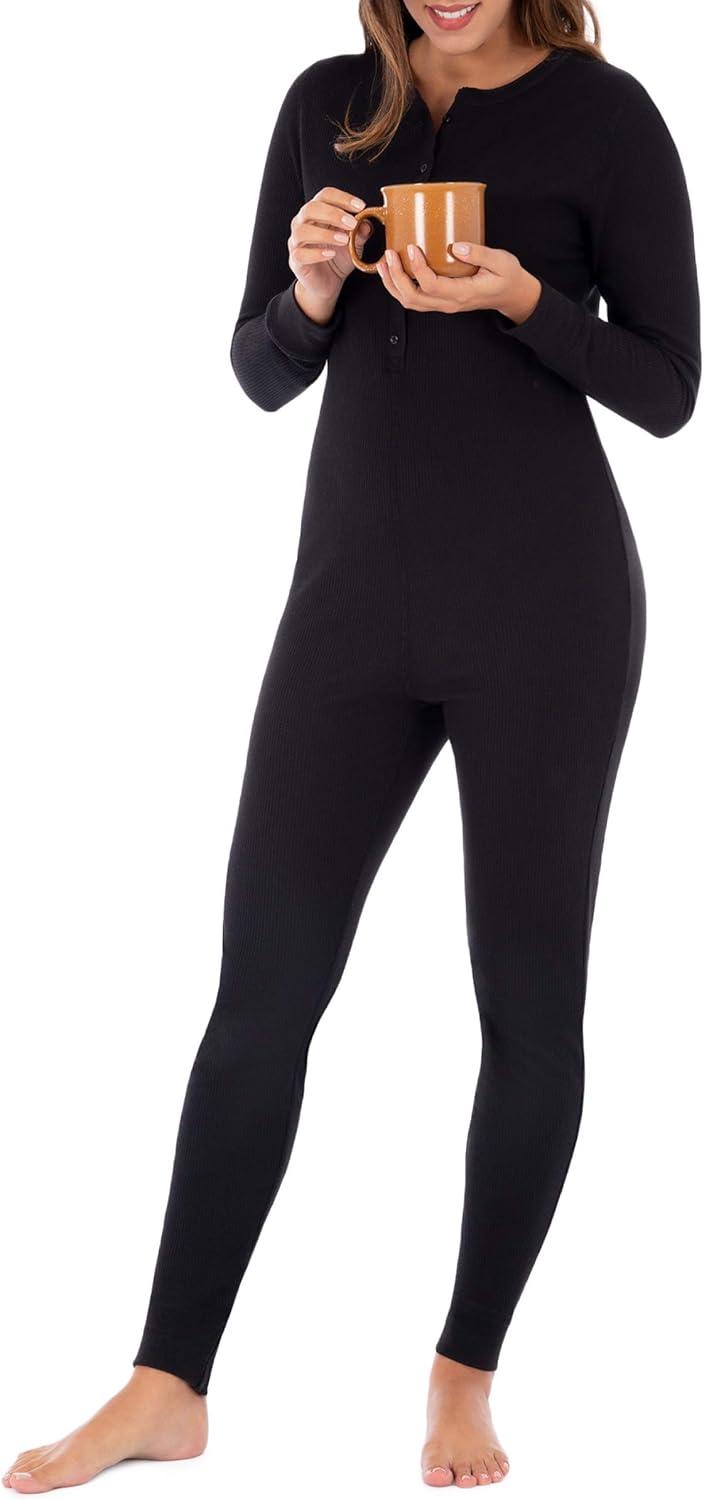 Fruit of the Loom womens Micro Waffle Premium Thermal Union Suit(Black)