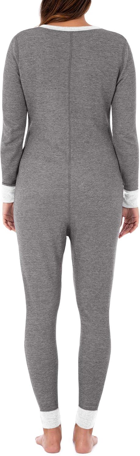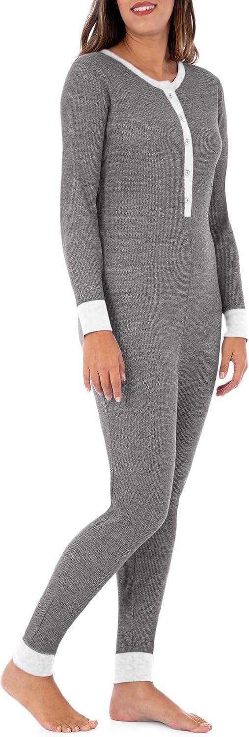 Fruit of the Loom womens Micro Waffle Premium Thermal Union Suit(Smoke Heather)