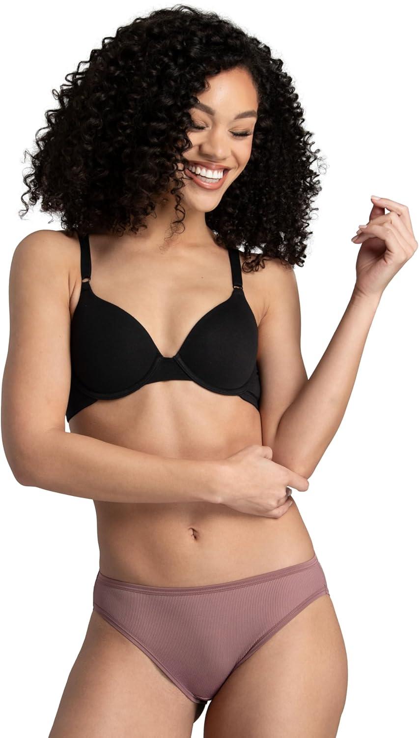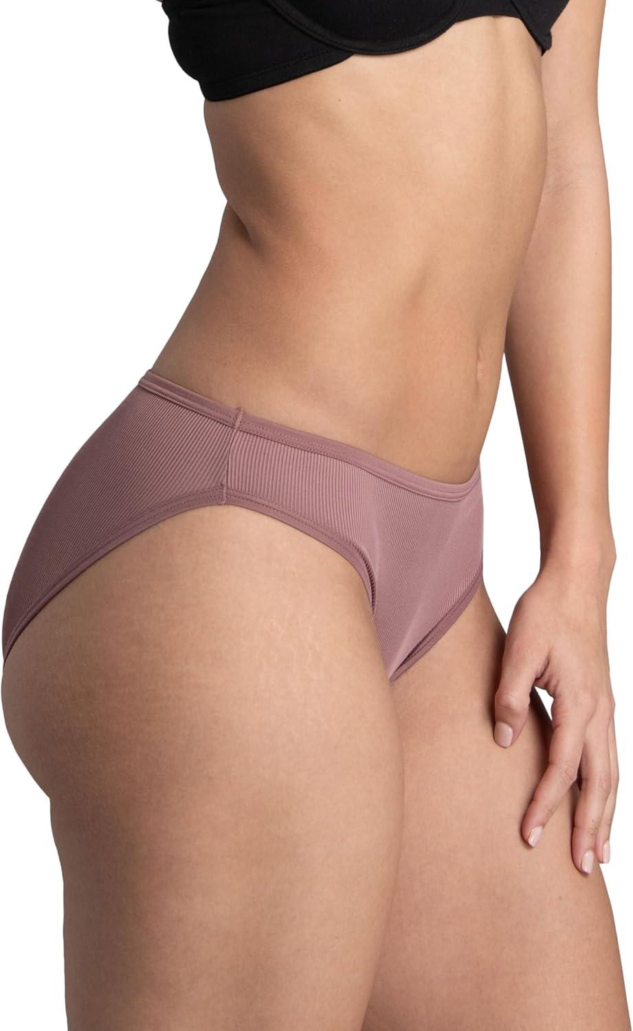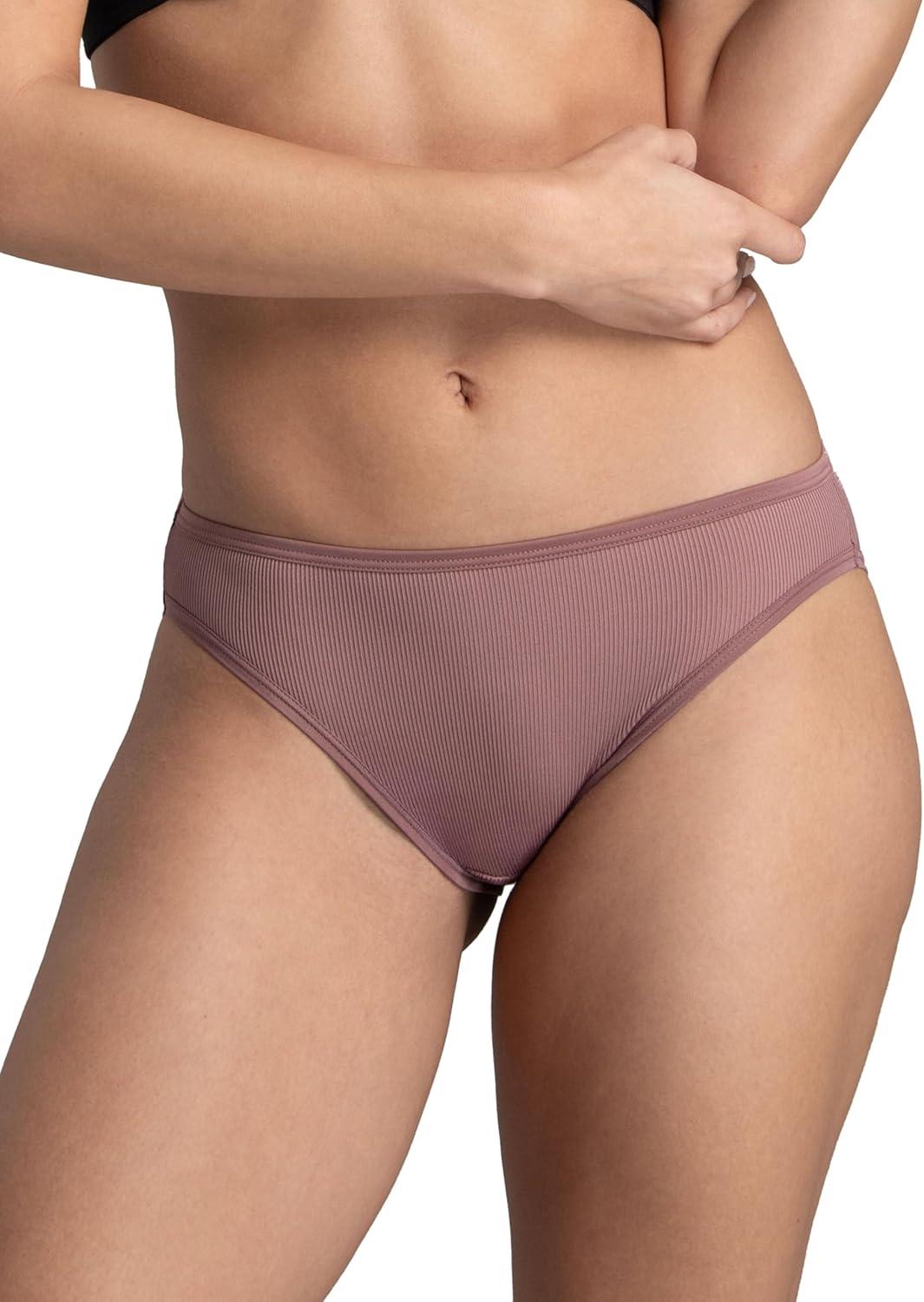 Fruit of the Loom Women’s Microfiber Underwear, Lightweight & Sleek, Available in Plus Size(Ribbed Bikini – 6 Pack – Colors May Vary)