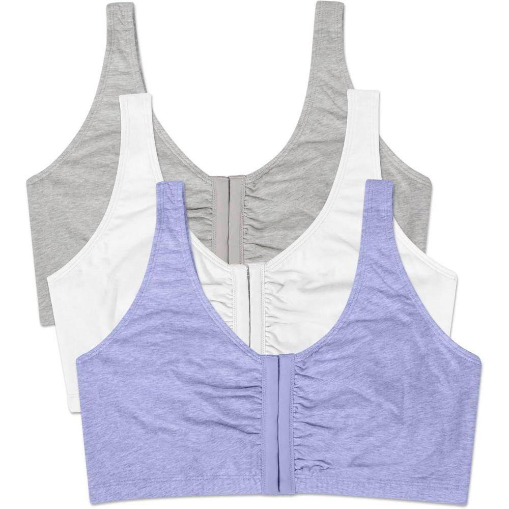 Fruit of the Loom Women’s Multi-Pack Front Closure Cotton Bra(Blue Gem Heather/White/Grey 3-pack)