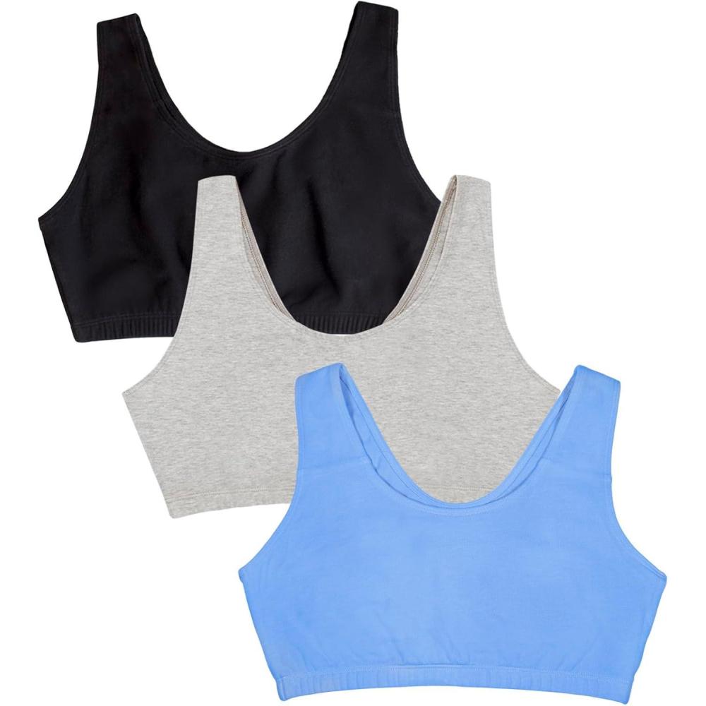 Fruit of the Loom Women’s Multi-Pack Tank Top Style Sports Bra(Cornflowerblue/Grey/Black)
