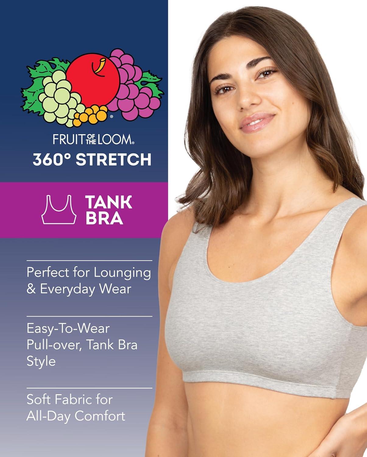 Fruit of the Loom Women’s Multi-Pack Tank Top Style Sports Bra(Grey/Grey/Grey)