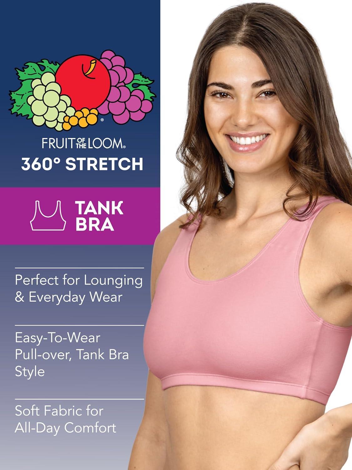 Fruit of the Loom Women’s Multi-Pack Tank Top Style Sports Bra(Midnight Meadow/Lilas/Grey Heather/Black Hue)