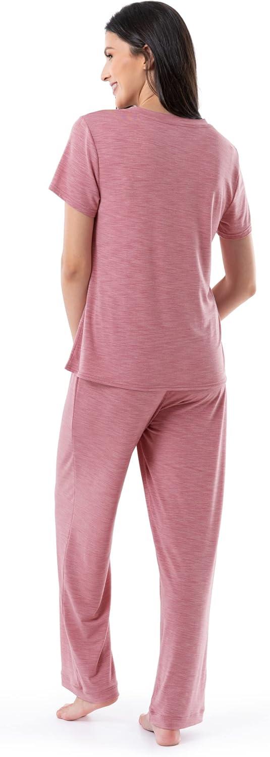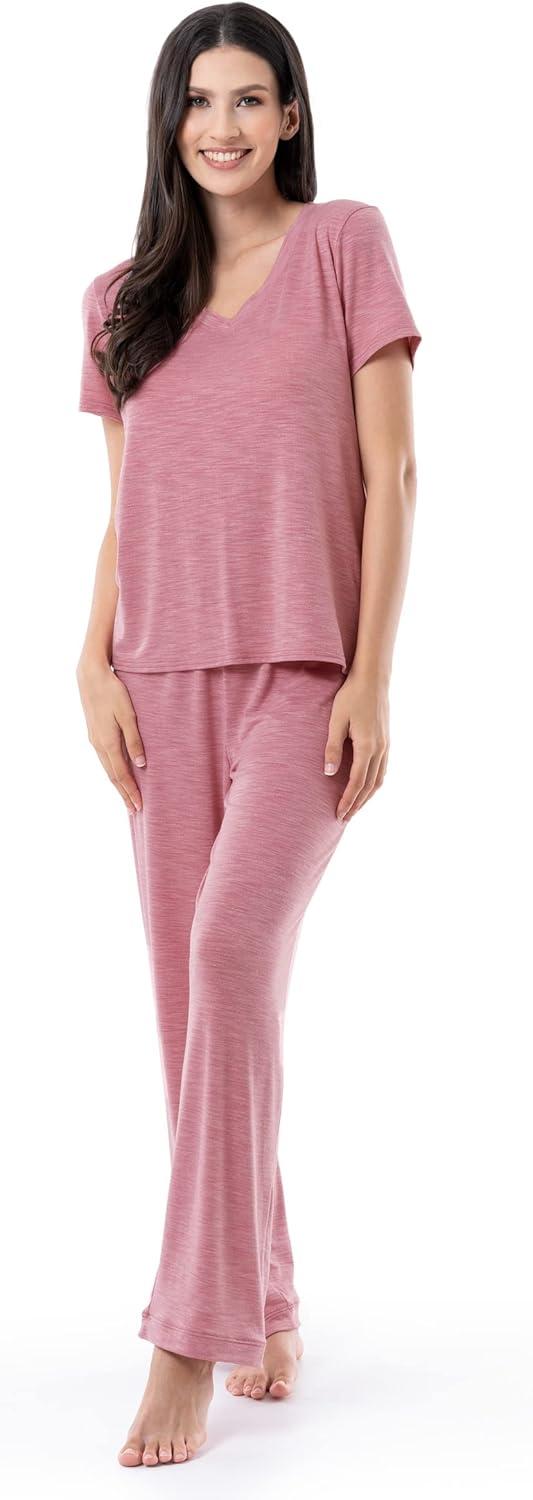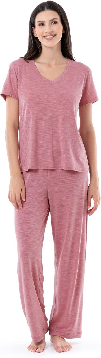 Fruit of the Loom womens Short Sleeve Tee and Pant 2 Piece Sleep Set(Antique Heather Blush)