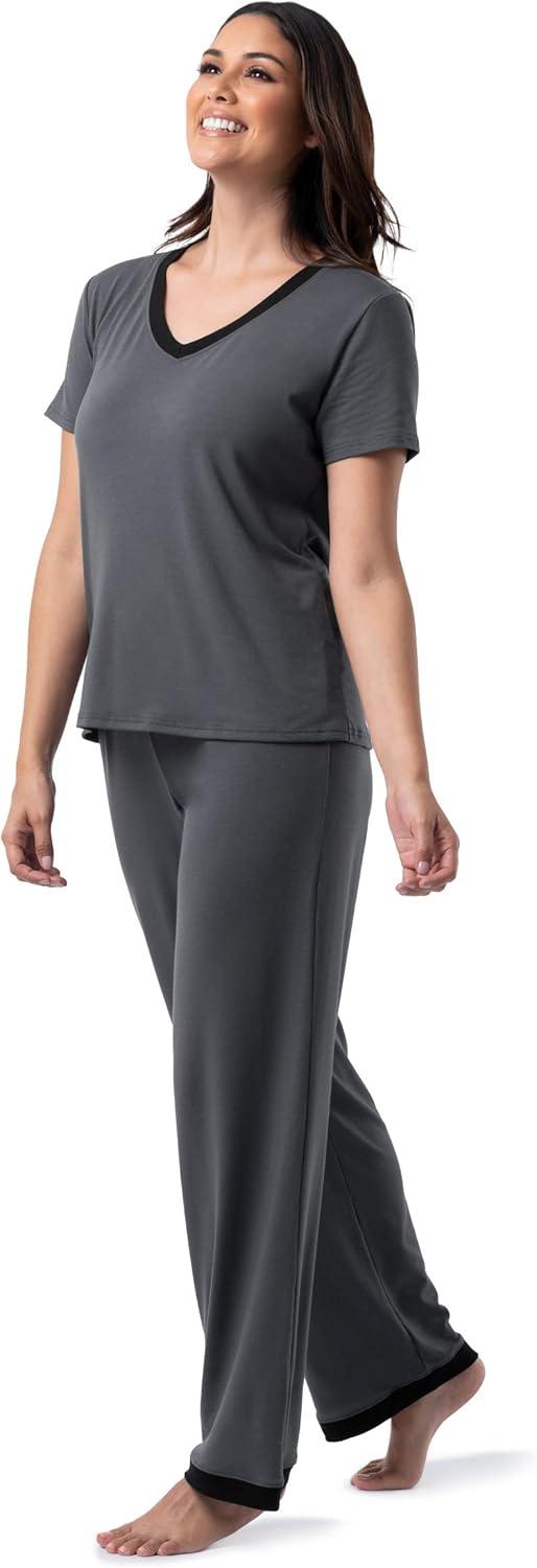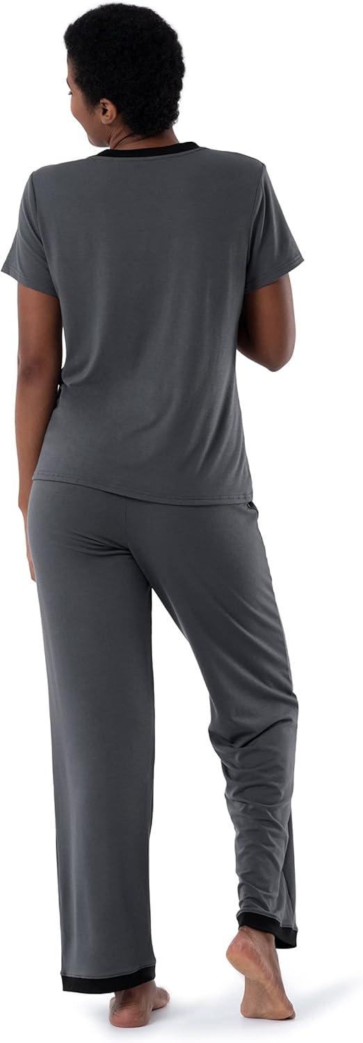 Fruit of the Loom womens Short Sleeve Tee and Pant 2 Piece Sleep Set(Soft Grey)