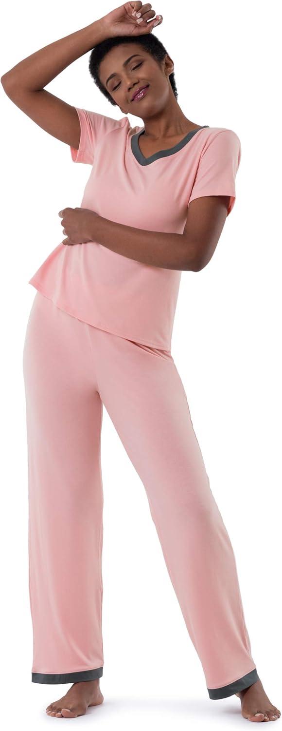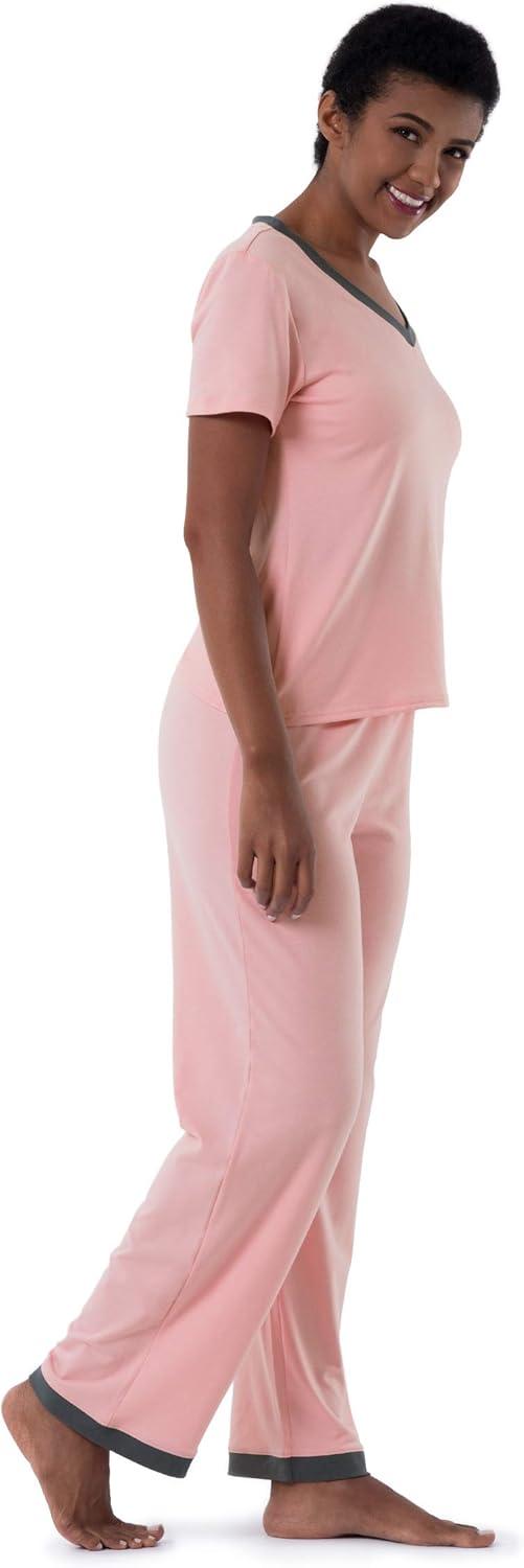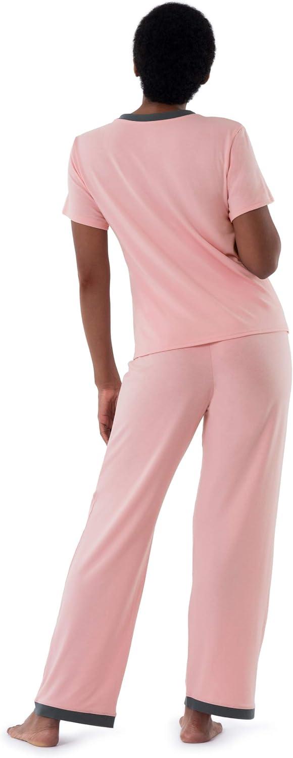 Fruit of the Loom womens Short Sleeve Tee and Pant 2 Piece Sleep Set(Soft Pink)