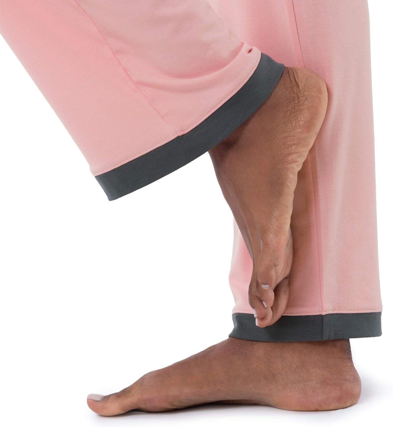 Stay comfy and cool in this Fruit of the Loom ladies short sleeve tee and full length pant 2 piece set that will have you ready to relax and unwind. Made of a super soft and breathable jersey knit fabric, this sleepwear set will have you drifting off to sleep in no time. This women's sleepwear set includes a v-neckline short sleeve tee and a full length pant with an elastic waistband. This 2 piece sleepwear set provides you with that cool and airy feel you desire to have a good nights rest without breaking a sweat. Wake up feeling restored and comfy in lightweight, relaxed fit, and breathable sleepwear from Fruit of the Loom.