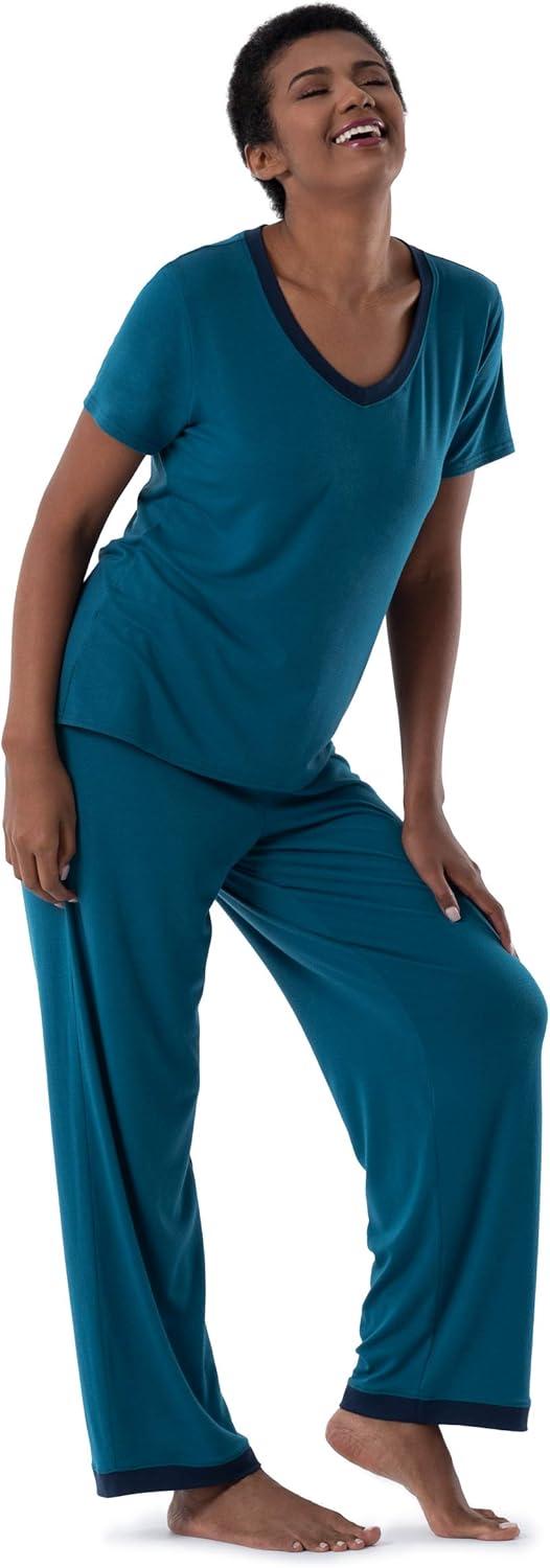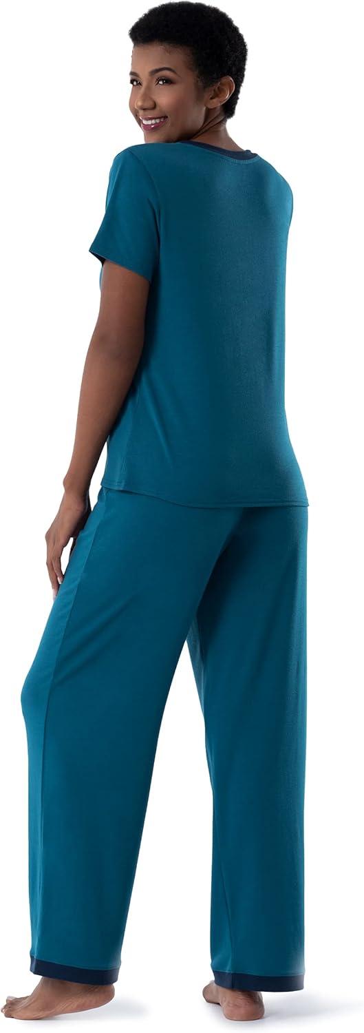 Fruit of the Loom womens Short Sleeve Tee and Pant 2 Piece Sleep Set(Turquoise)