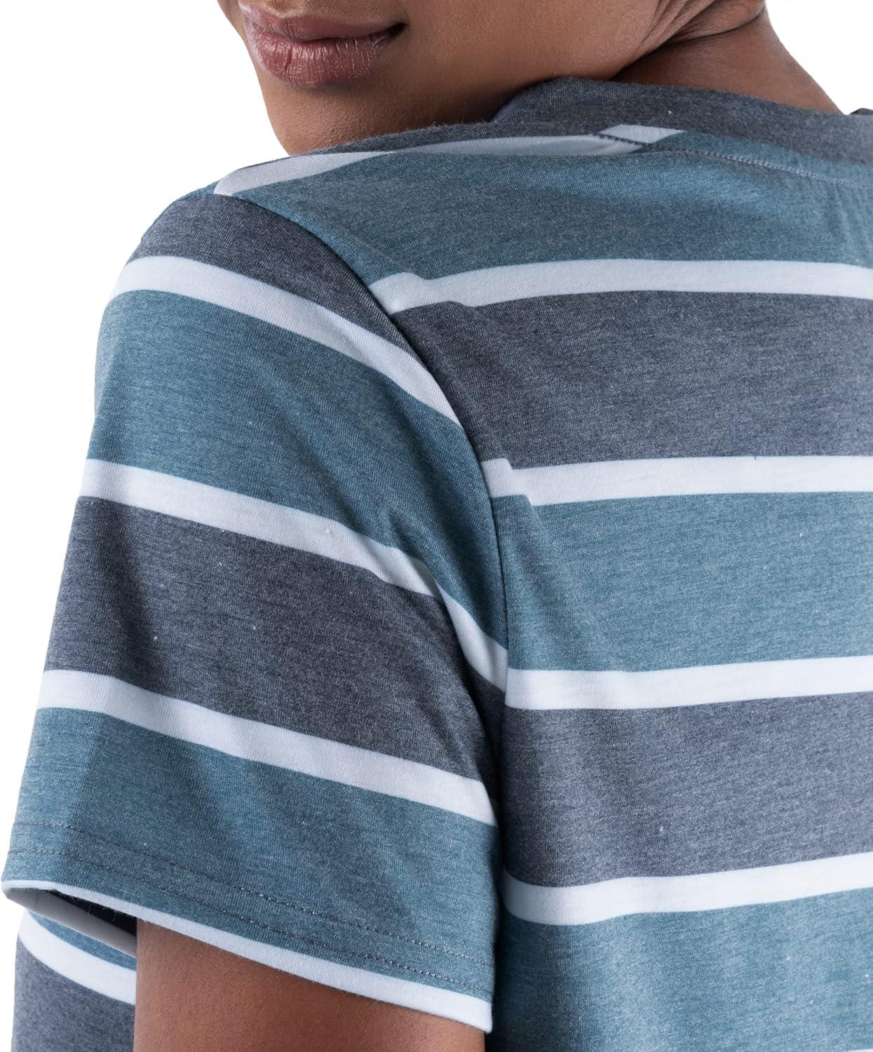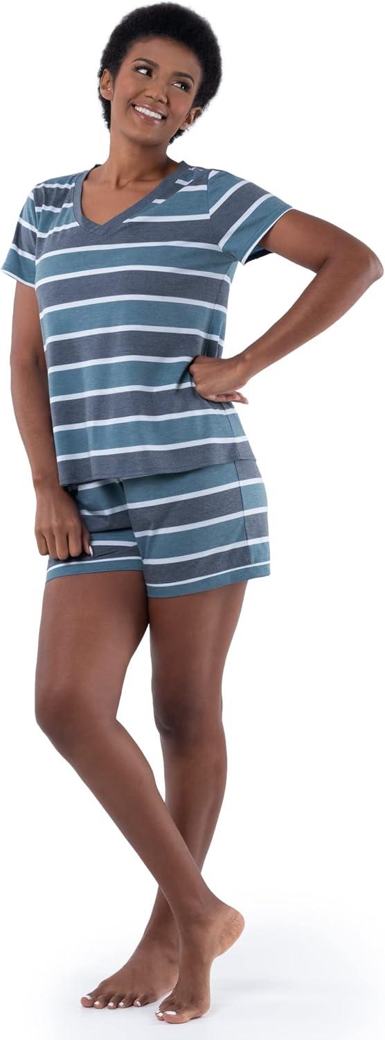 Fruit of the Loom Women’s Short Sleeve Tee and Short 2 Piece Sleep Set(Blue Stripe)