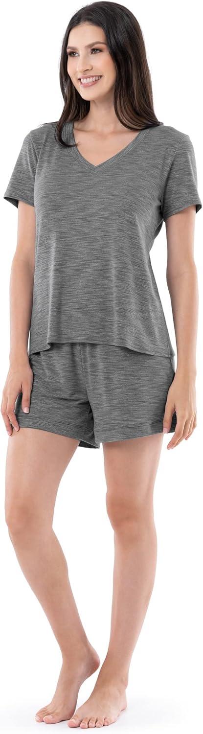 Fruit of the Loom Women’s Short Sleeve Tee and Short 2 Piece Sleep Set(Heather Grey)