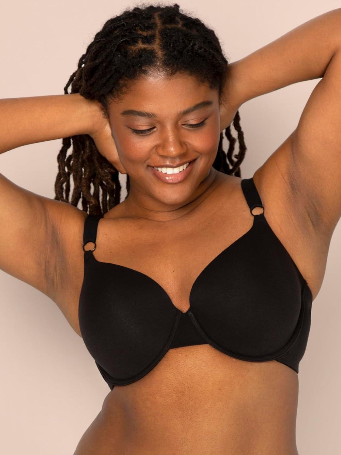 Fruit of the Loom Womens Smooth Cotton T-Shirt Bra – Ultra-Soft, Flexible, and Invisible Under Tees(Black Hue/Black Hue)