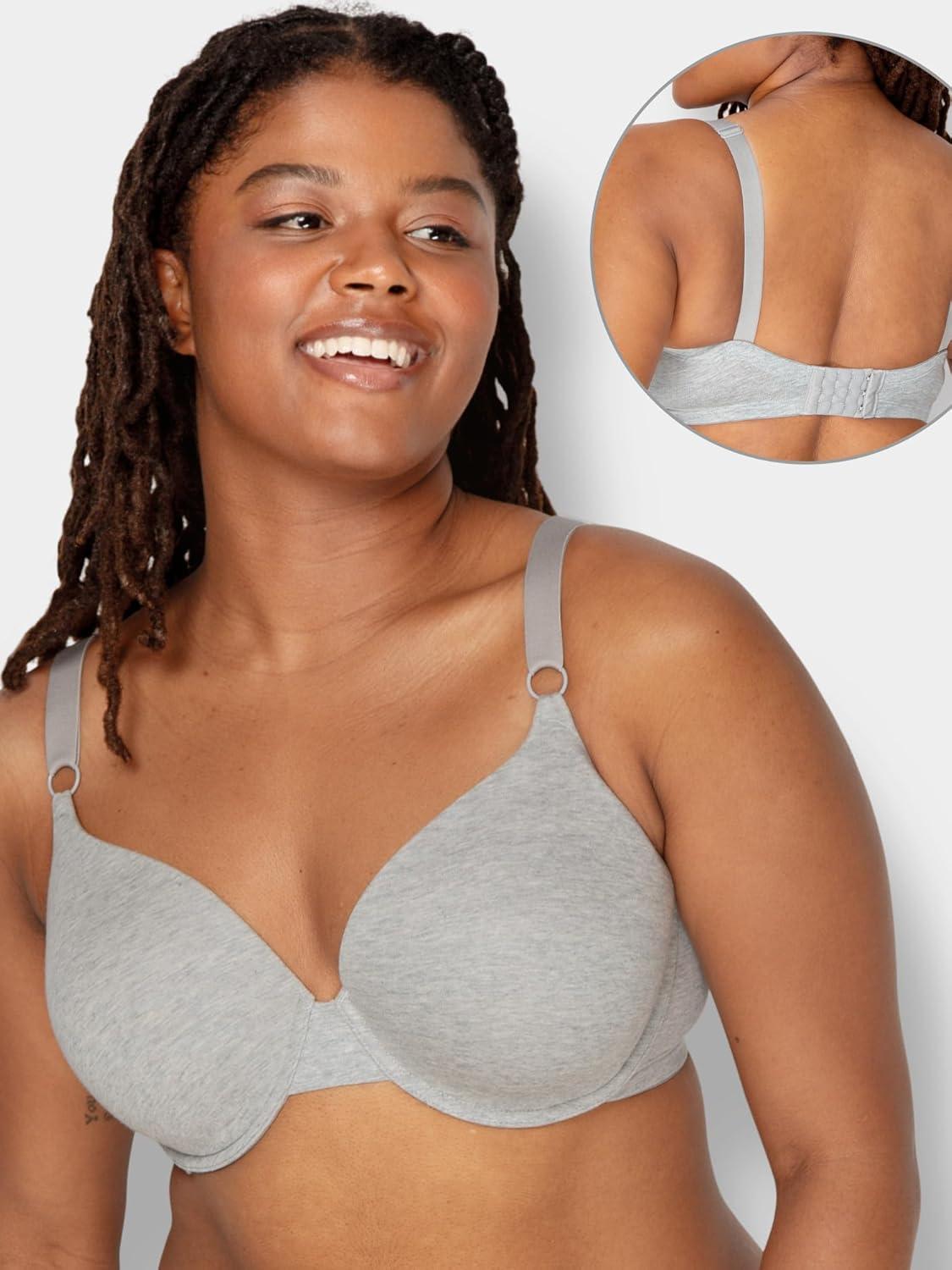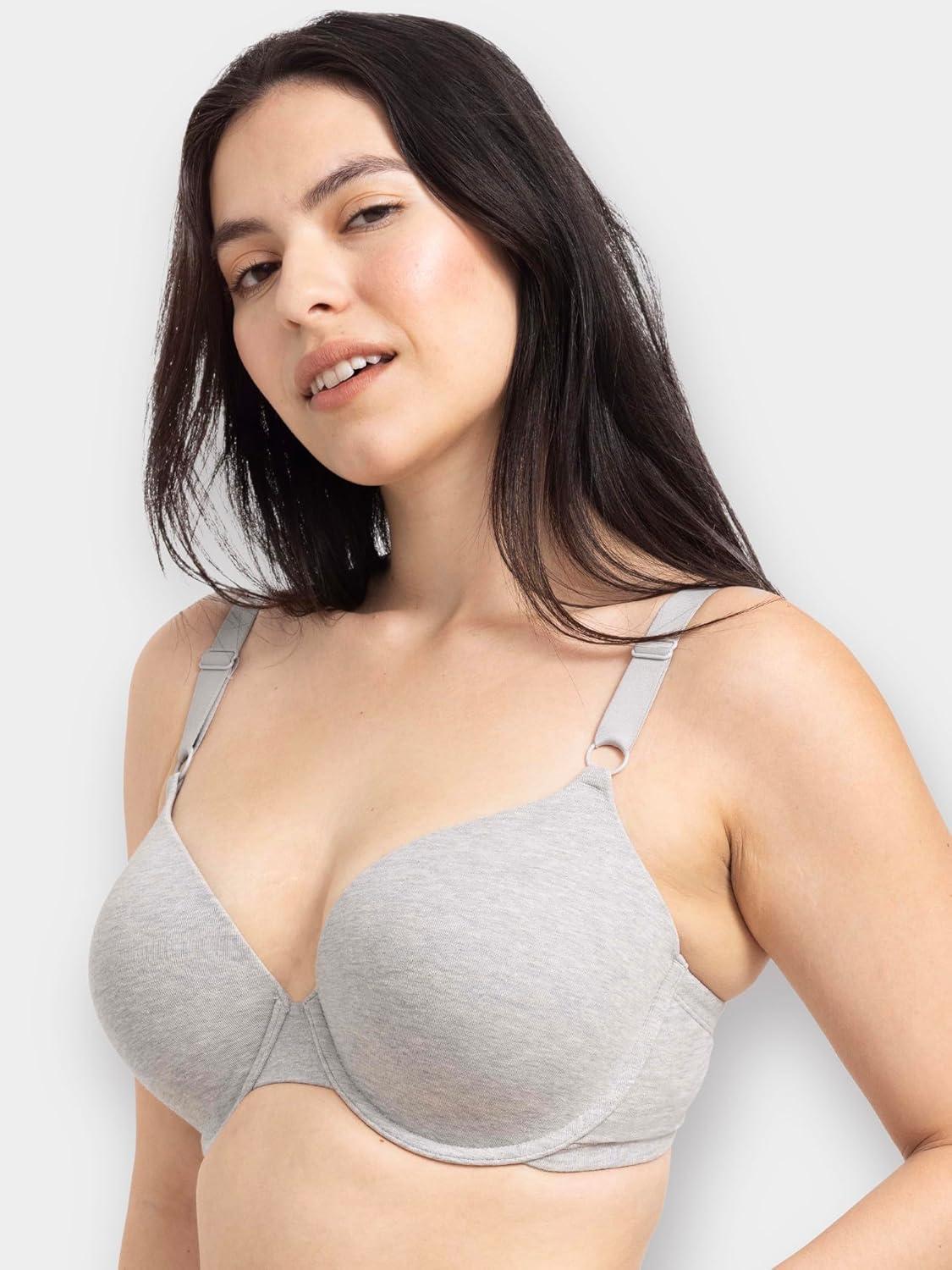 Fruit of the Loom Womens Smooth Cotton T-Shirt Bra – Ultra-Soft, Flexible, and Invisible Under Tees(Black Hue/Grey Heather)